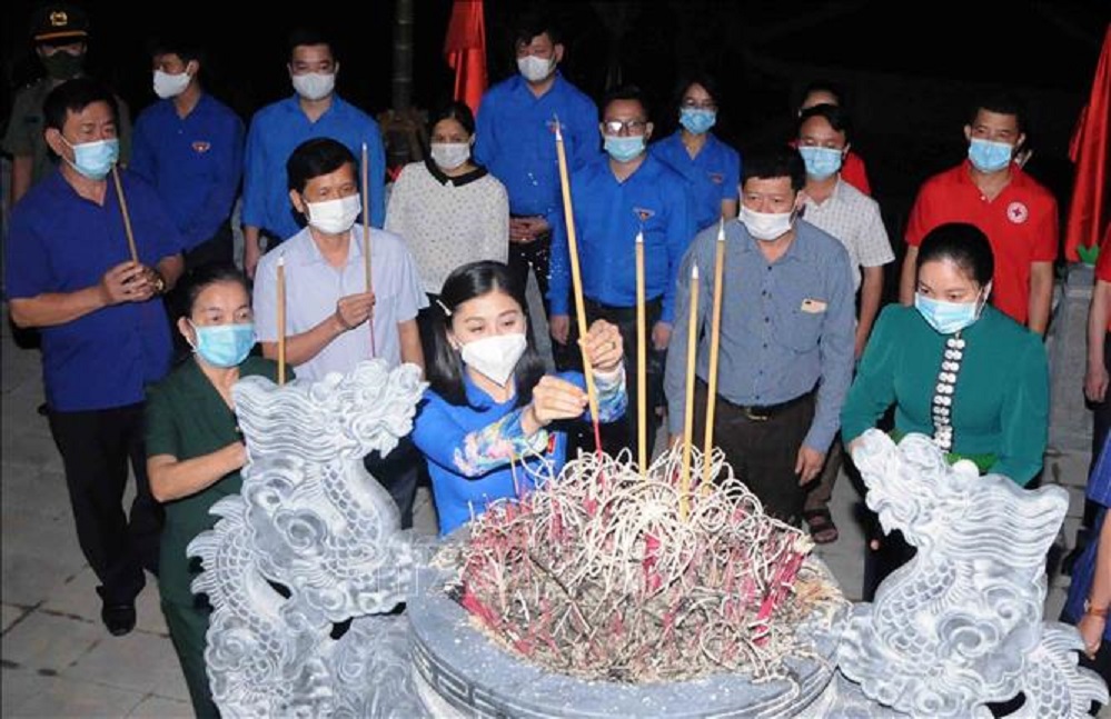 Đại biểu dâng hương tri ân các Anh hùng liệt sĩ, Thanh niên xung phong tại Nhà tâm linh thuộc khu Di tích lịch sử Ngã ba Cò Nòi, xã Cò Nòi, huyện Mai Sơn, tỉnh Sơn La. Ảnh: TTXVN |