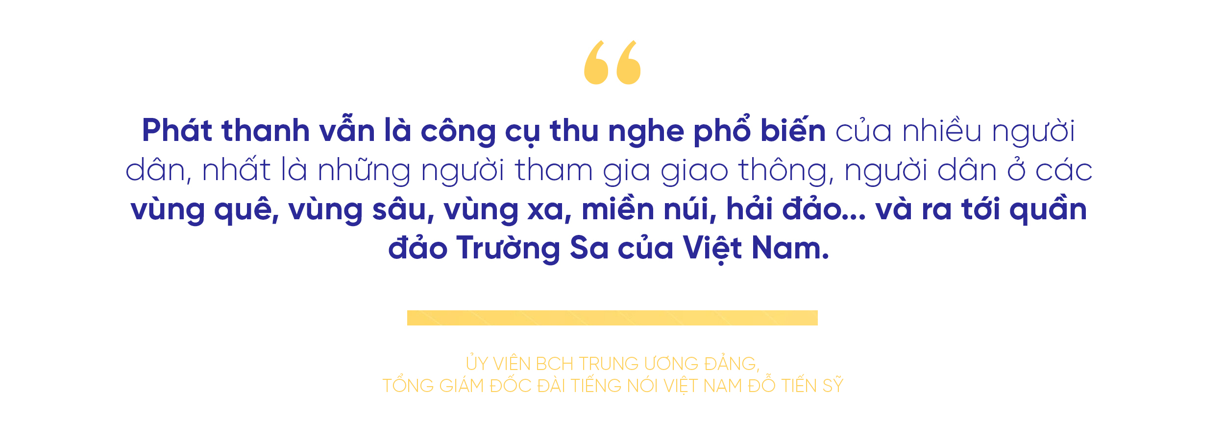 Tổng Giám đốc Đỗ Tiến Sỹ: Thính giả của chúng ta giờ đây đã thay đổi thói quen nghe Đài, họ không còn thụ động ngồi trước radio để nghe lần lượt các chương trình phát thanh hàng giờ liền nữa. Giờ đây, họ có thể nghe Phát thanh ở bất kỳ đâu, ở mọi lúc, mọi nơi thông qua chiếc điện thoại thông minh. Và cũng từ điện thoại thông minh, họ tiếp cận được đa dạng thông tin từ mạng xã hội và các loại hình báo chí khác.