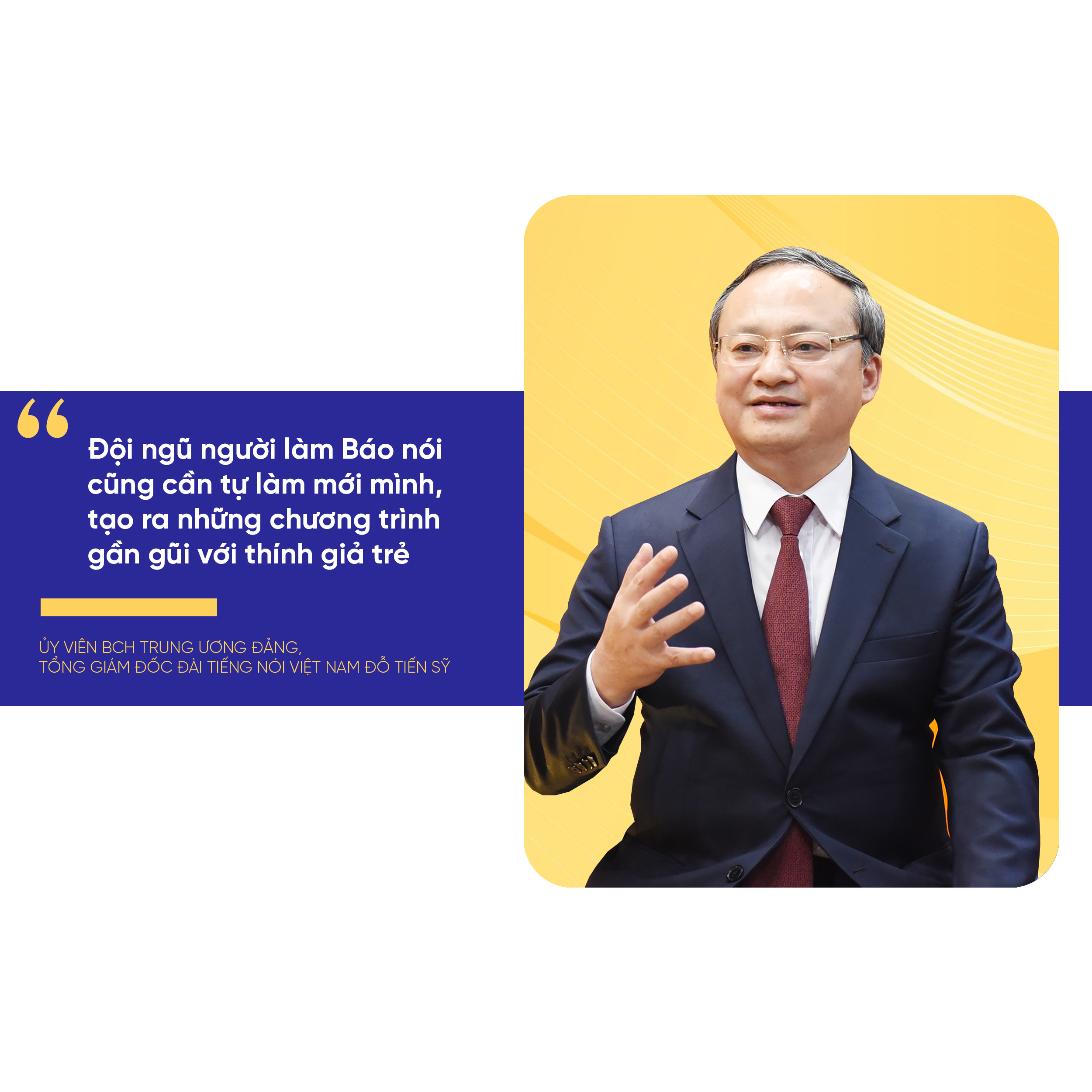 Tổng Giám đốc Đỗ Tiến Sỹ: Đài TNVN đã và đang chủ động nắm bắt, tối đa tận dụng công nghệ trong tác nghiệp, biên tập, dàn dựng, sản xuất, phát sóng chương trình và tương tác với công chúng. Phát thanh giờ đây không chỉ phát sóng trên radio truyền thống, mà còn tiếp cận thính giả trên cả không gian mạng, thông qua các Báo Điện tử VOV.VN, VTCNews hay các ứng dụng OTT của Đài TNVN như VOV Live, VTC Now, VOV Media, hoặc trên nền tảng Facebook, Youtube. Nhờ đó, sự tương tác với công chúng cũng nhanh hơn, kịp thời hơn. Công chúng cũng có thể trở thành người cung cấp thông tin từ hiện trường cho nhà Đài, làm phong phú thêm nội dung phát sóng. Đài Phát thanh giờ đây luôn có sự tương tác kịp thời với thính giả, “nói cùng thính giả” để tạo sự thân thiện, gắn kết. Từ hiện trường, thính giả cũng có thể “lên sóng” nói với bạn nghe Đài qua những chương trình trực tiếp. Từ đó, Đài sẽ có được “tệp” công chúng trung thành, thường xuyên nghe Đài TNVN.
