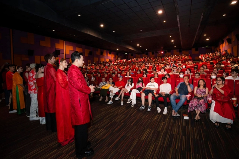 Đoàn làm phim "Mai" tổ chức cinetour giao lưu khán giả dịp Tết. Ảnh: Đoàn làm phim.