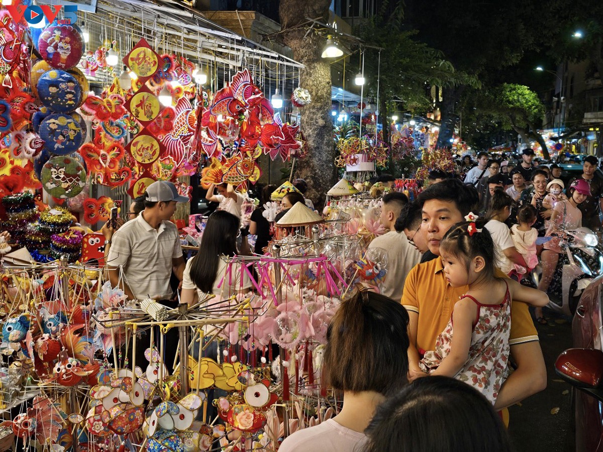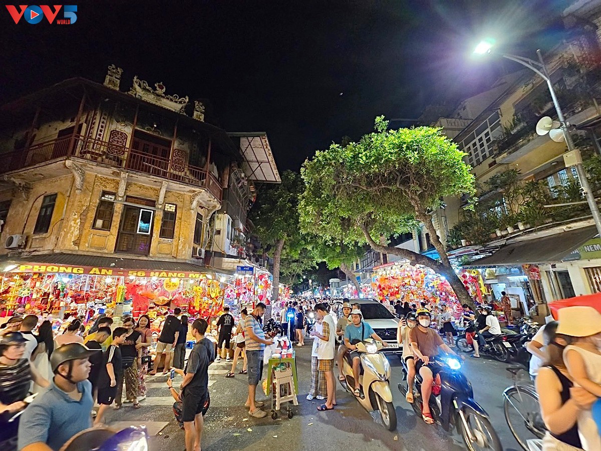 | Mới đầu tháng 7 Âm lịch, không khí Tết Trung thu đã tràn ngập con phố. Đặc biệt là vào buổi tối, phố Hàng Mã lúc nào cũng đông, bất kể ngày nào trong tuần. Ảnh: Hà Phương/VOV5. |