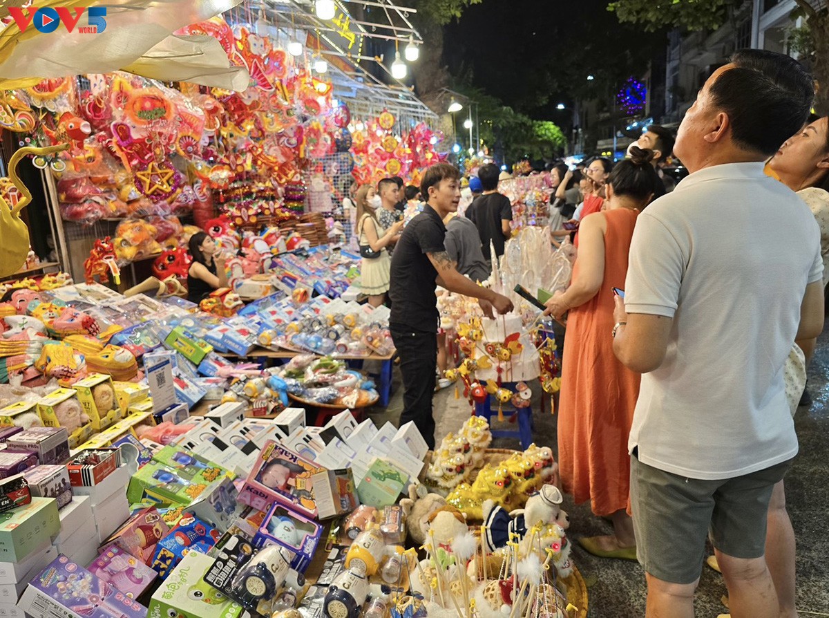 | Theo dự đoán, nhu cầu mua sắm cho dịp Trung thu 2024 sẽ tăng cao do người dân có xu hướng đi chơi nhiều hơn mọi năm, đó cũng là lý do nhiều cửa hàng trang hoàng sớm và đầu tư mạnh tay để thu hút khách. Ảnh: Hà Phương/VOV5. |