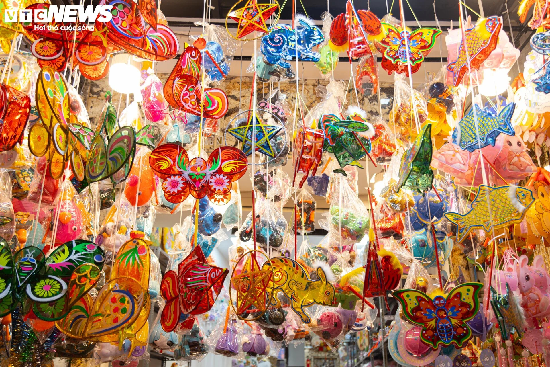 | Một số tiểu thương cho biết, qua một vài ngày mở bán, có thể thấy xu hướng mua sắm của người dân năm nay ưa chuộng các sản phẩm thủ công, chất lượng cao, thân thiện với môi trường. Đồ chơi Trung thu của Việt Nam đang chiếm ưu thế. Các loại đèn lồng, đèn ông sao truyền thống làm từ tre và giấy kính được nhiều người lựa chọn. Ảnh: Minh Đức/VTCnews. |