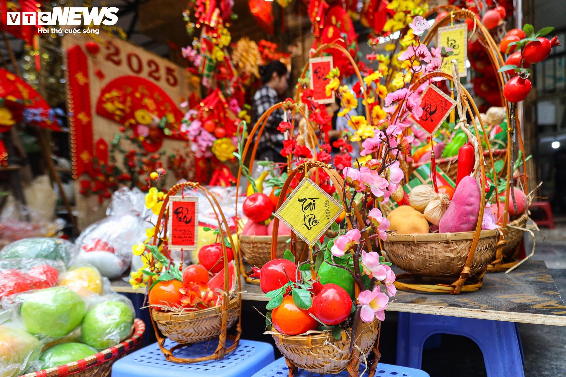 | Các bộ trang trí đầy đủ với mâm ngũ quả, hoa đào, hoa lựu, pháo giấy...có giá lên đến vài triệu đồng. |
