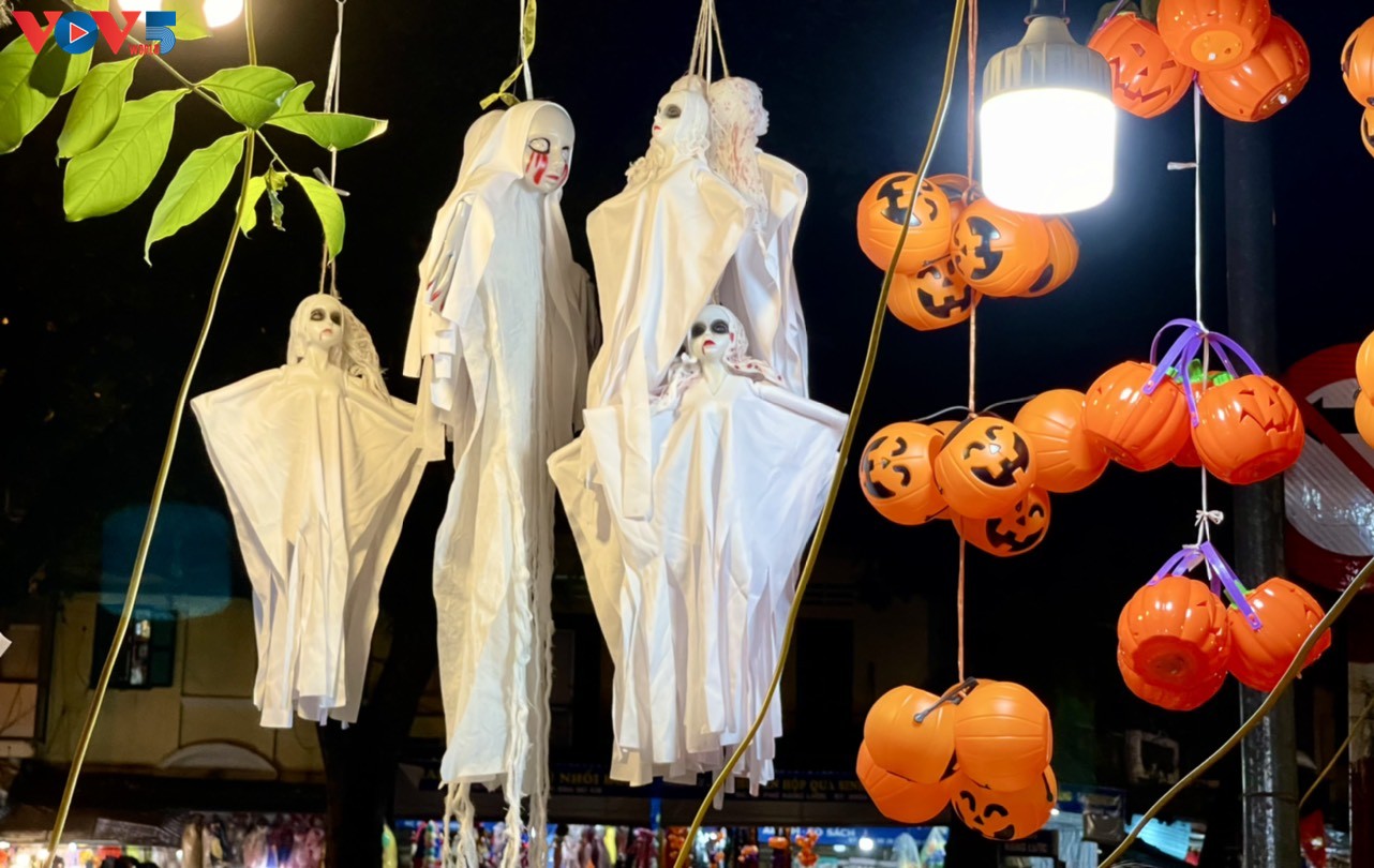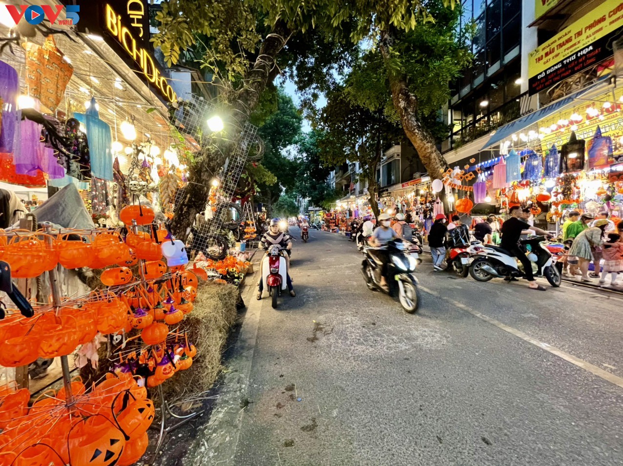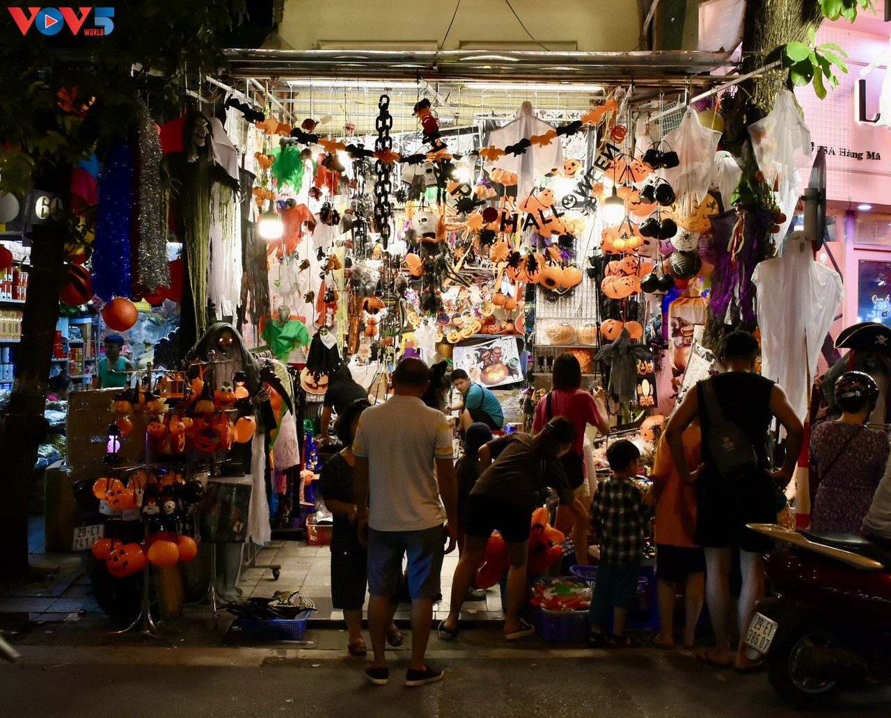 Những ngày này, không khí Halloween tràn ngập trên phố Hàng Mã với gam màu chủ đạo cam, đen-trắng kinh dị. |