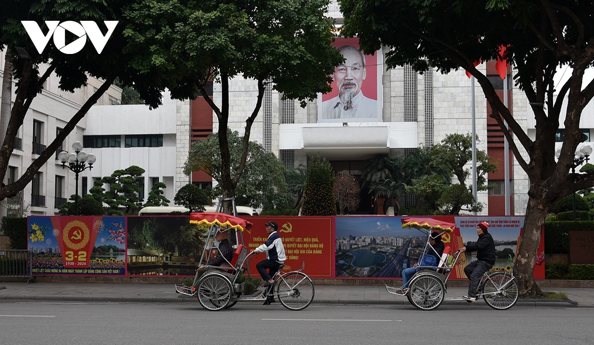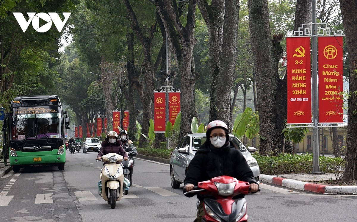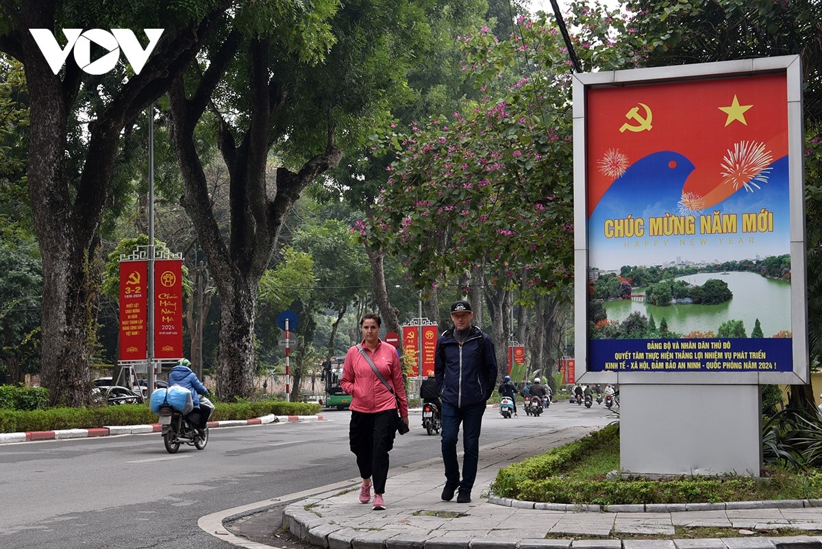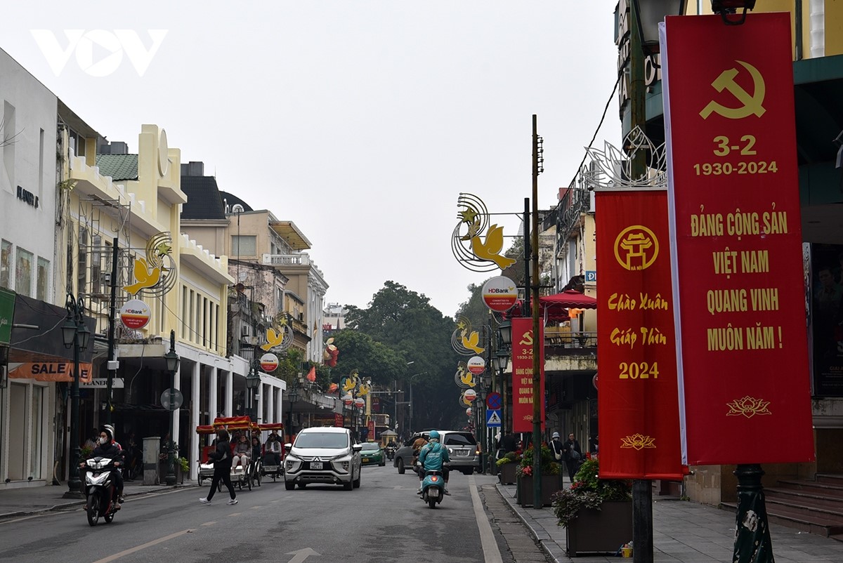 Không khí vui tươi, phấn khởi chào mừng ngày thành lập Đảng, đón chào năm mới Giáp Thìn 2024 tràn ngập các tuyến phố trung tâm Hà Nội. |