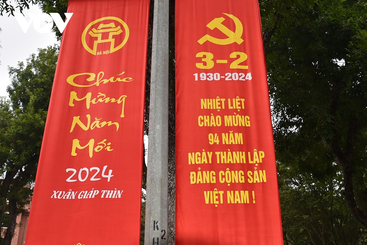 Các tuyến phố Hà Nội đã khoác lên mình màu áo mới, rực rỡ cờ hoa đón chào Xuân mới Giáp Thìn 2024. |