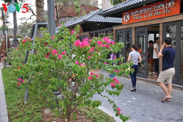 Phố sách được trồng nhiều hoa, tạo không gian lãng mạn thơ mộng. |