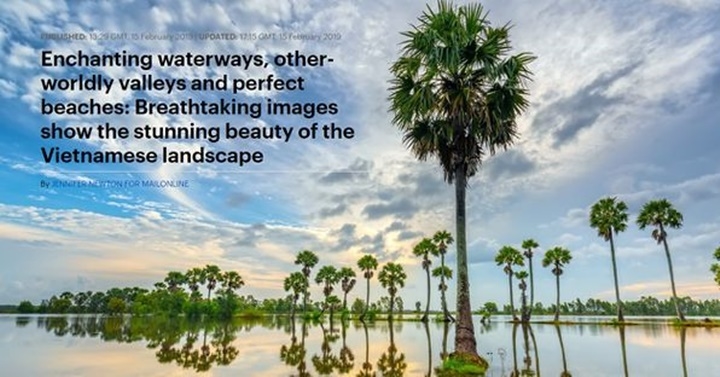 "Những dòng kênh, những thung lũng quyến rũ, những bãi biển hoàn hảo: Những bức ảnh đẹp đến nín thở đã để hiện vẻ đẹp ấn tượng của phong cảnh Việt Nam". Dòng giới thiệu trên bức ảnh chụp cảnh bình minh rực rỡ tại Đồng bằng Sông Cửu Long, Việt Nam. |