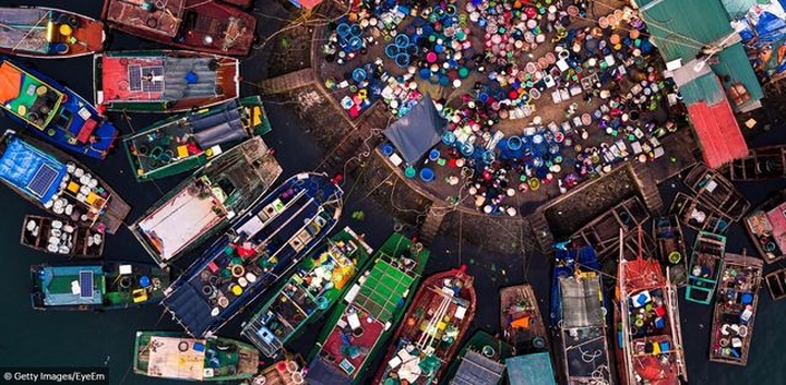 Bức ảnh đầy mê hoặc chụp chợ Cẩm Phả, Quảng Ninh từ trên không. |