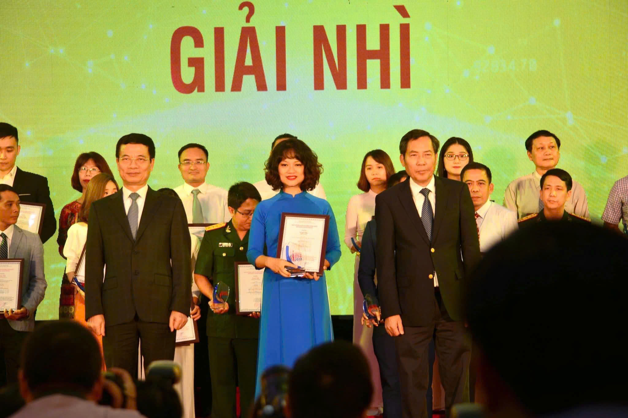 Nhà báo Nguyễn Mỹ Trà nhận giải Nhì Giải thưởng Toàn quốc về Thông tin Đối ngoại 2018 cho tác phẩm sách ảnh Trường Sa nơi ta đến. |