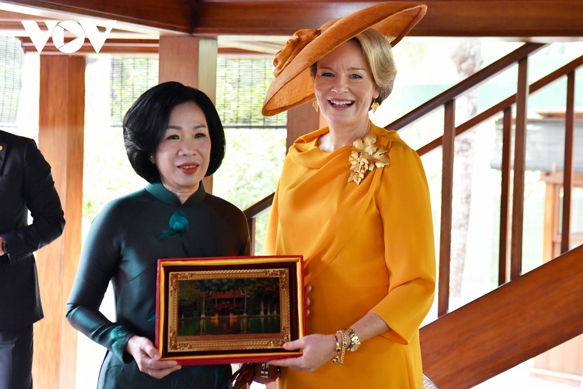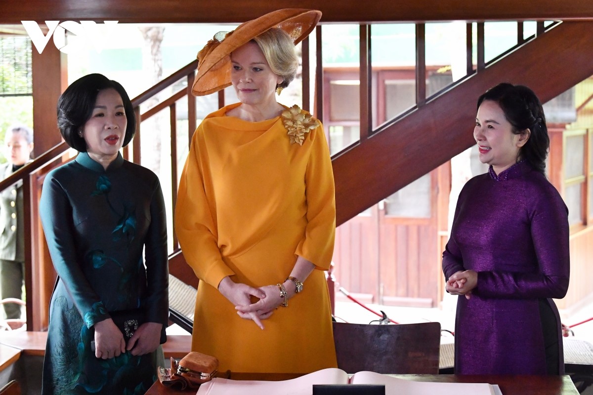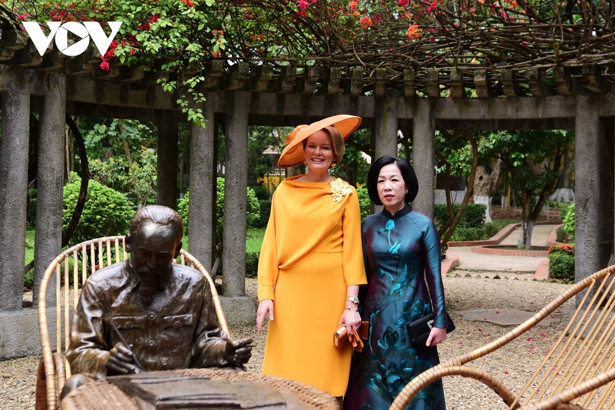 Sau lễ đón chính thức Nhà vua và Hoàng hậu Bỉ thăm Việt Nam tại Phủ Chủ tịch, Phu nhân Chủ tịch nước Lương Cường - bà Nguyễn Thị Minh Nguyệt đã mời Hoàng hậu Mathilde tới thăm Khu Di tích Chủ tịch Hồ Chí Minh. |