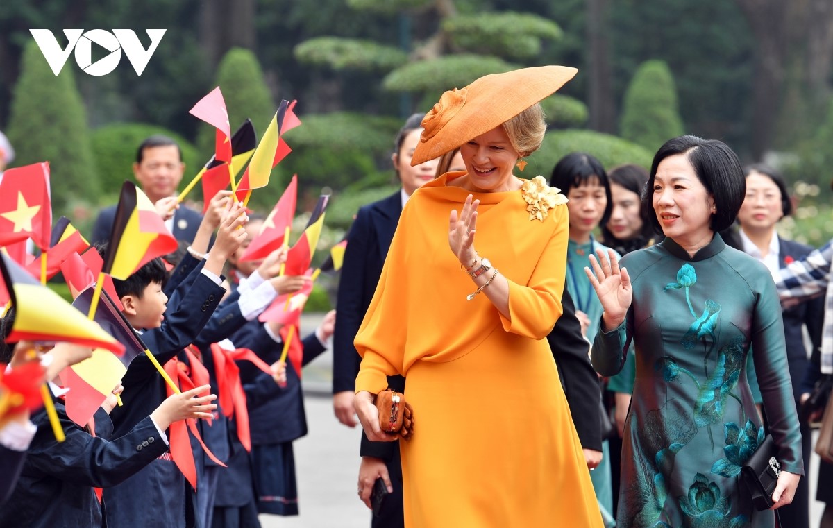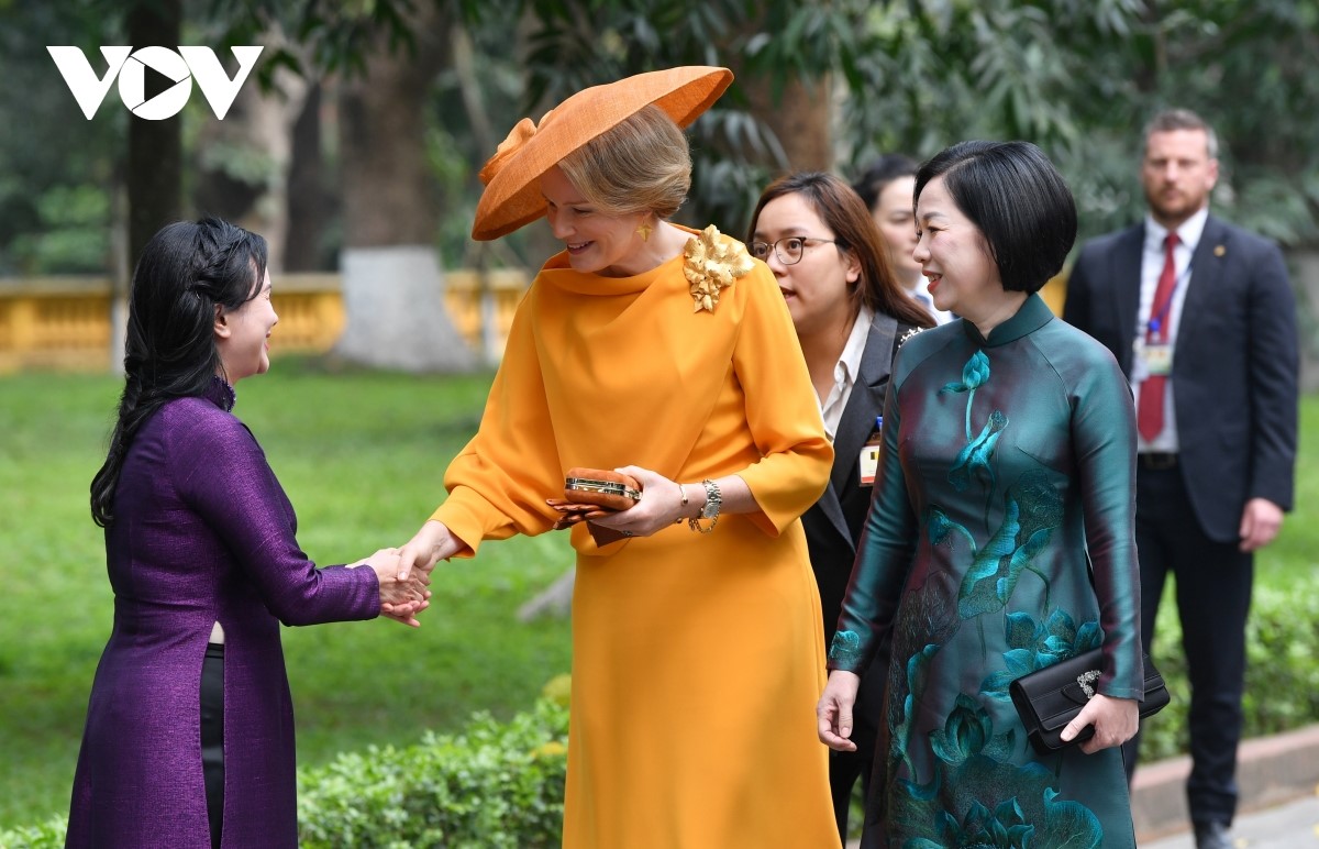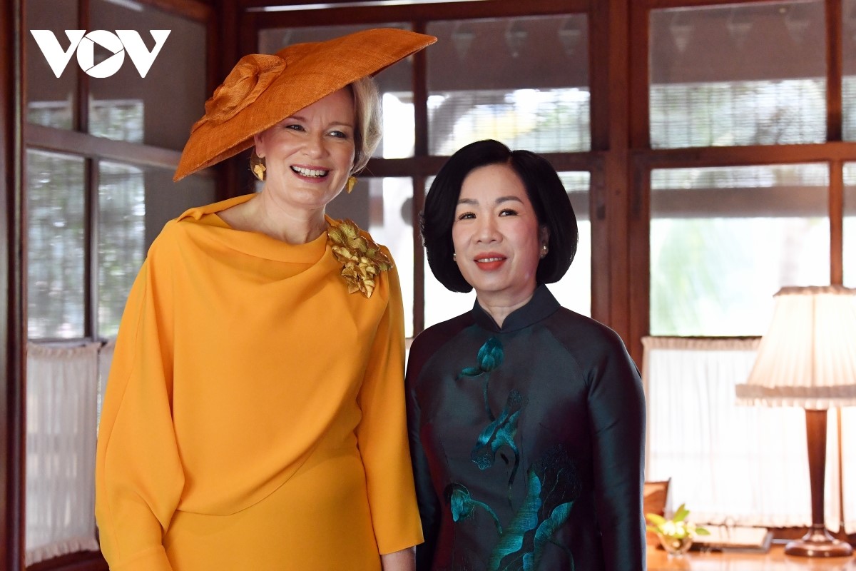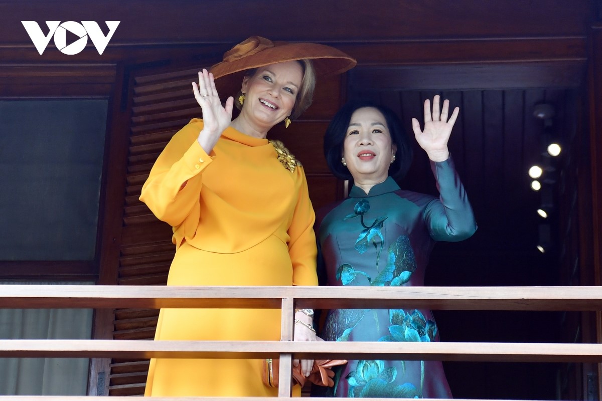 Sau lễ đón chính thức Nhà vua và Hoàng hậu Bỉ thăm Việt Nam tại Phủ Chủ tịch, Phu nhân Chủ tịch nước Lương Cường - bà Nguyễn Thị Minh Nguyệt đã mời Hoàng hậu Mathilde tới thăm Khu Di tích Chủ tịch Hồ Chí Minh. |