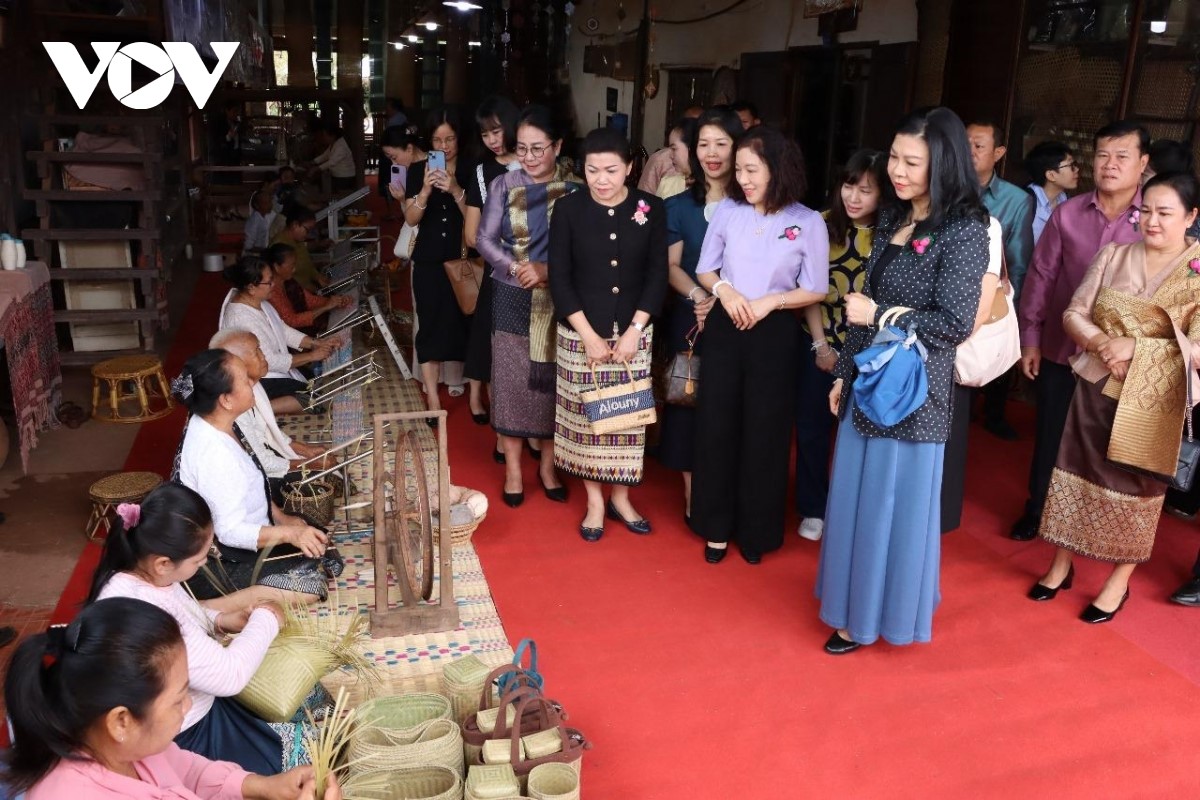 Thăm làng nghề dệt may truyền thống tại Vientiane, nơi phần lớn những người thợ thủ công đồng thời vẫn làm công việc đồng áng, Phu nhân Ngô Phương Ly đã chia sẻ thông tin về ngành nghề truyền thống và chính sách của Việt Nam trong việc tạo điều kiện thúc đẩy, phát triển các ngành nghề truyền thống, đặc biệt là chương trình “Mỗi xã 1 sản phẩm” (OCOP) nhằm phát triển khu vực nông thôn theo hướng phát triển nội lực và gia tăng giá trị, bảo tồn những giá trị tốt đẹp của nông thôn Việt Nam.