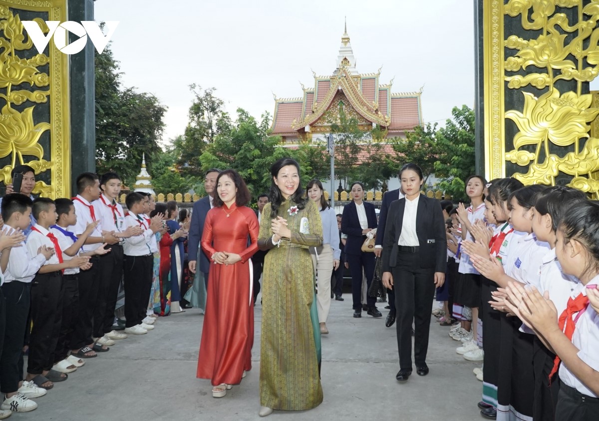 Trong khuôn khổ chuyến thăm, phu nhân Tổng Bí thư Ngô Phương Ly đã thăm chùa Phật tích, gặp gỡ, động viên con em kiều bào có hoàn cảnh khó khăn và tặng sách, truyện bằng tiếng Việt cho lớp học tiếng Việt miễn phí tại Chùa. Nhân dịp này, nhóm thiện nguyện Từ Phúc đã tặng những phần qùa thiết thực, có ý nghĩa cho Hội Phụ nữ khuyết tật Lào và cộng đồng người Việt Nam tại Lào.