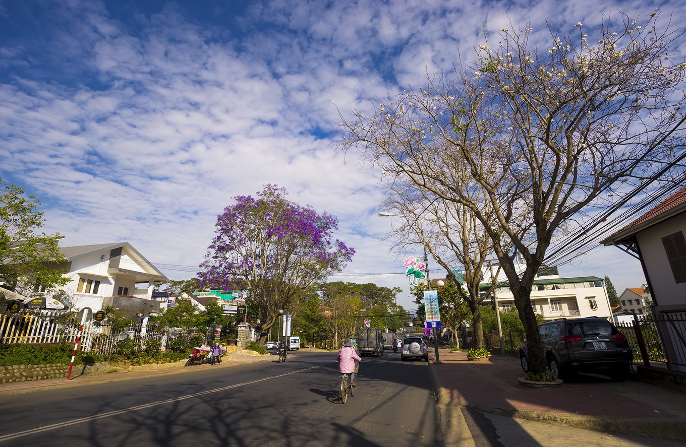 Từ đường Trần Phú, Lê Đại Hành, Lê Hồng Phong, rồi xung quanh hồ Xuân Hương, dọc hai bên đường Nguyễn Thị Minh Khai vào Chợ Đà Lạt, đường lên nhà hàng Thủy Tạ hay trước trường Nguyễn Du trên đường Bùi Thị Xuân, dốc Đá đường Phù Đổng Thiên Vương hay xa hơn là cung đường vào Thung Lũng Tình Yêu, vòng vèo ven bờ hồ Tuyền Lâm dẫn vào Thiền Viện Trúc Lâm, rồi ngang qua Đường Hầm Đất sét… Như một bồng bềnh sóng hoa rời rợi tím, tím the thắt buồn mà sao lại thấy rộn rã từng nhịp yêu đến mê đắm.