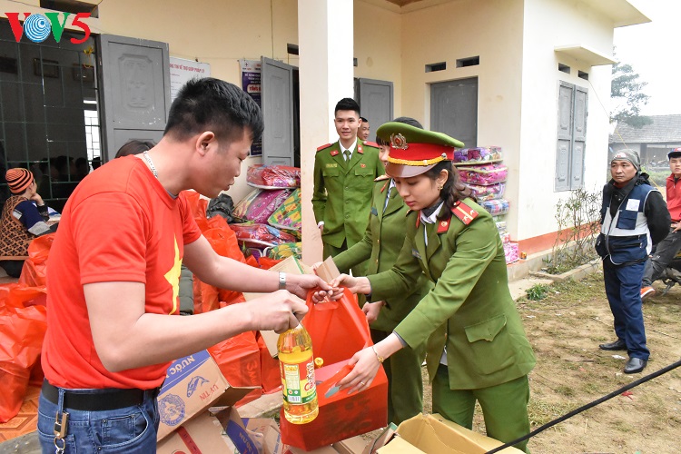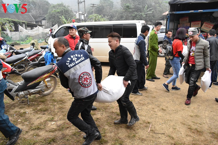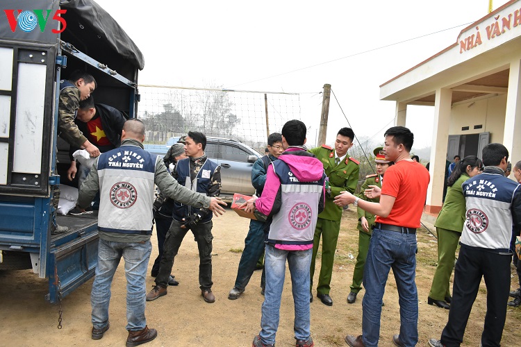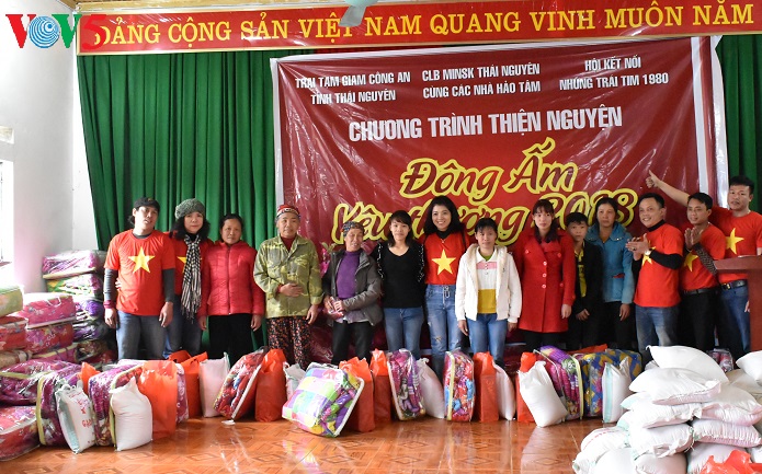 (VOV5) - Trong những ngày giáp Tết Nguyên Đán, hơn 100 hộ nghèo ở xã Phương Giao, một xã nghèo của huyện Võ Nhai, tỉnh Thái Nguyên, dường như ấm lòng hơn khi được nhận những món quà tình nghĩa. Những chiếc chăn ấm, gạo, nước mắm, dầu ăn được trao tận tay bà con. Chương trình do câu lạc bộ Minsk Thái Nguyên, Trại tạm giam công an tỉnh Thái Nguyên và Hội kết nối những trái tim 1980 kết hợp tổ chức.
