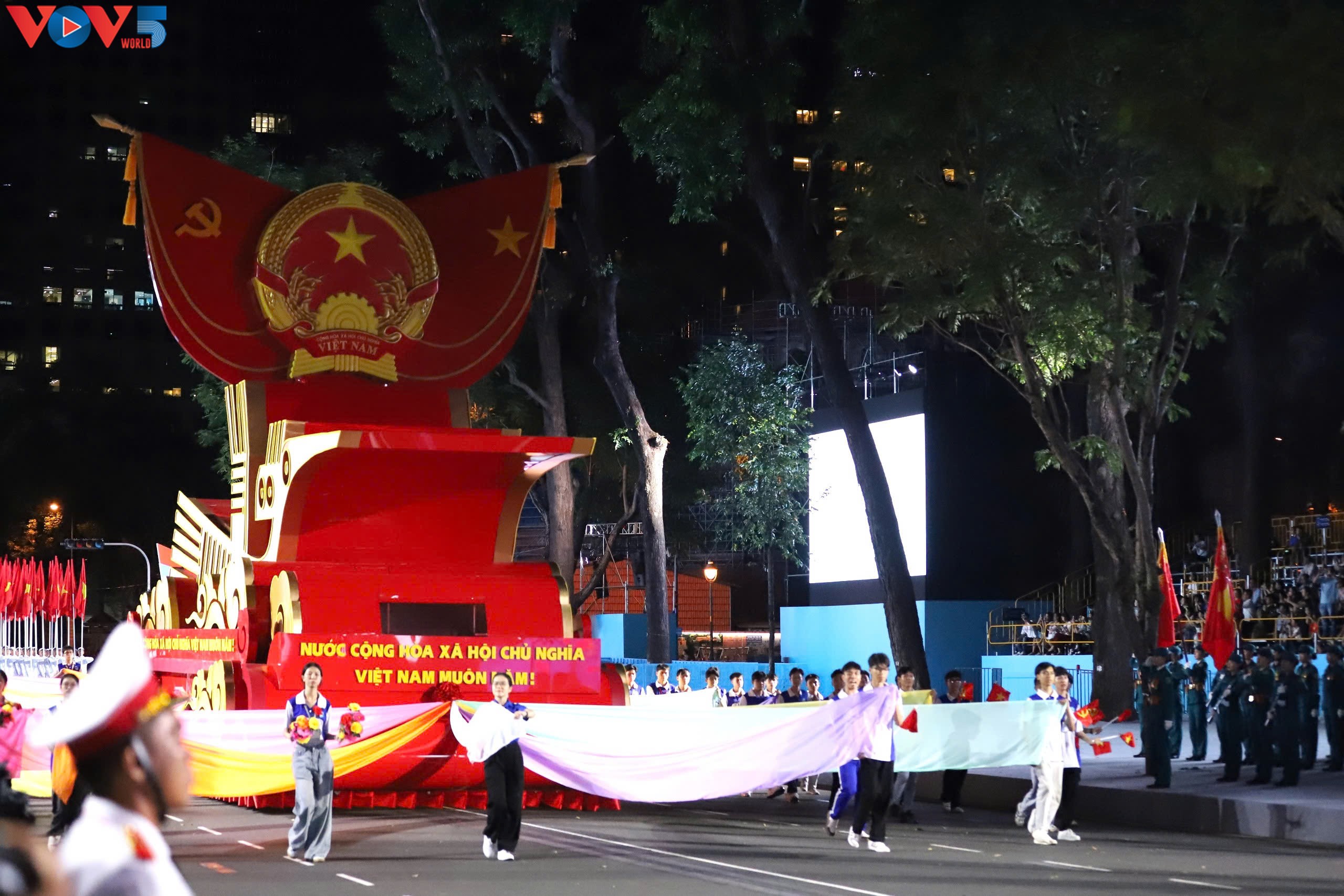 | Lần thứ hai tổ chức tổng hợp luyện diễu binh, diễu hành tại TP.HCM, đã có sự tham gia của màn đồng diễn nghệ thuật chào mừng. |