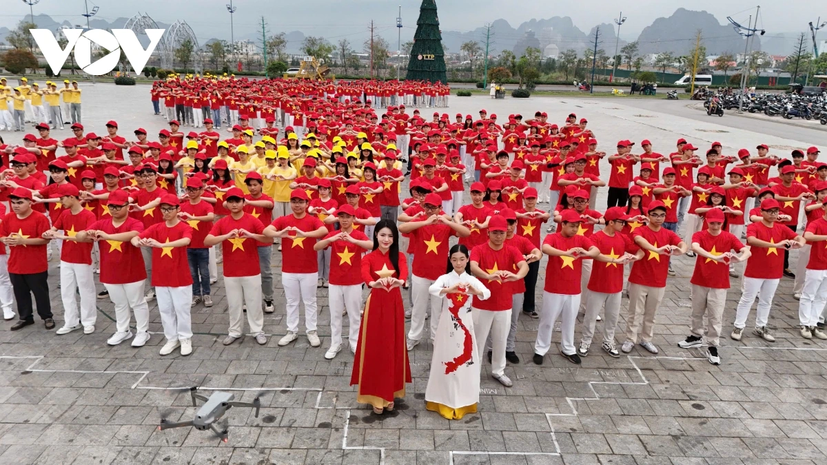 | Đây cũng là dịp nhiều trường học trên địa bàn tỉnh Quảng Ninh lựa chọn để giáo dục truyền thống yêu nước, lòng tự hào dân tộc cho học sinh. Tại thành phố Cẩm Phả, 500 học sinh tổ chức xếp hình bản đồ Việt Nam, Quốc kỳ Việt Nam, hình trái tim... Đây là những hình ảnh ý nghĩa, thể hiện niềm kiêu hãnh, niềm tự hào dân tộc của thế hệ trẻ. |