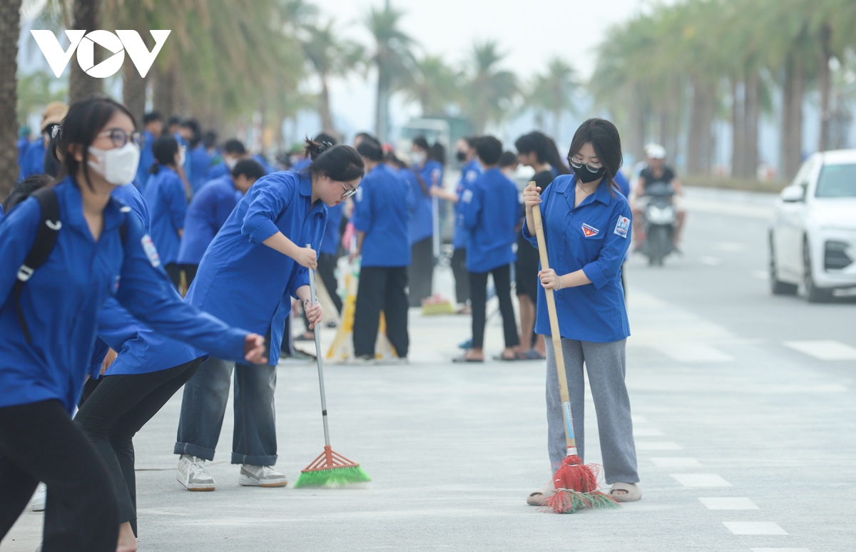 (VOV5) -Nhiều người dân thức dậy từ 5 giờ sáng để cùng nhau dọn công viên, ngõ xóm. Cả vạn thanh niên và các lực lượng ra quân dọn bãi biển, góp sức giúp Hạ Long, Quảng Ninh sớm sạch đẹp trở lại.
