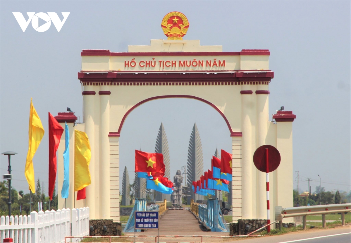 Khu di tích Quốc gia đặc biệt Đôi bờ Hiền Lương- Bến Hải được trang trí rợp bóng cờ trước ngày Hội Thống nhất non sông.