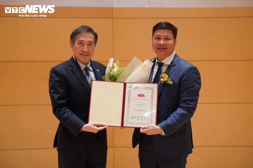 Đại diện UBND TP Tuy Hòa (bên phải ảnh) nhận giải thưởng. Ảnh: Thanh Huyền