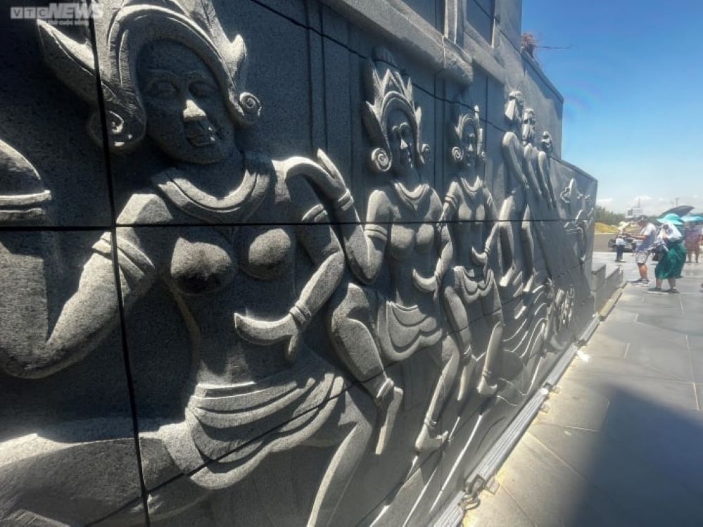 Những hình ảnh, họa tiết được chạm khắc tại Tháp Nghinh Phong. Ảnh: vtc.vn