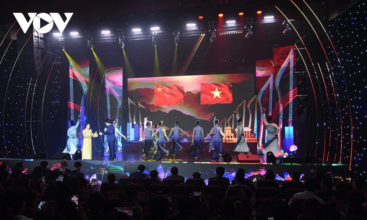 | Tiết mục văn nghệ chào mừng "Bài ca thanh niên Việt - Trung" do các nghệ sĩ của Việt Nam và Trung Quốc biểu diễn. |