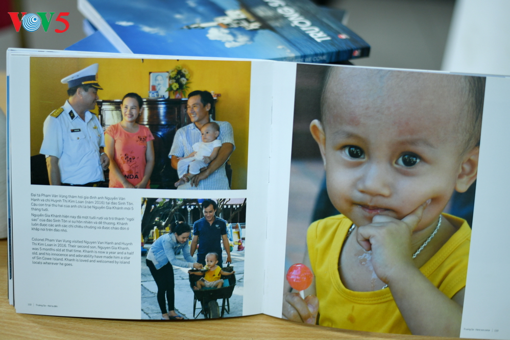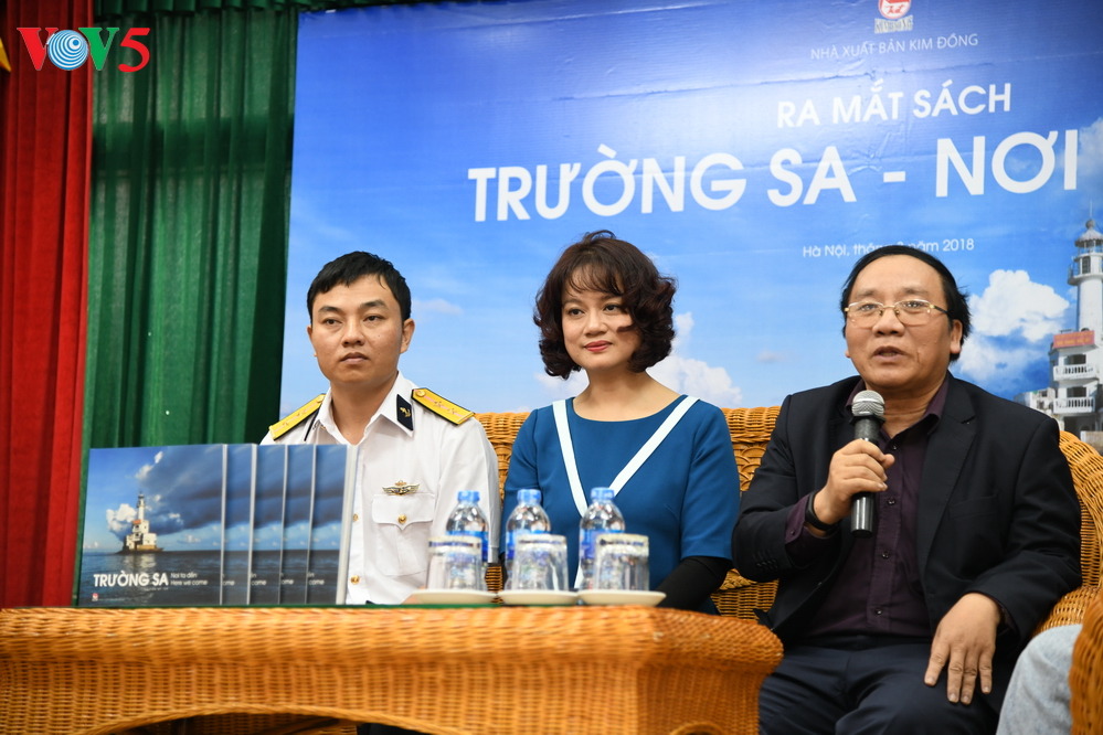 | Cuốn sách "Trường Sa - Nơi ta đến" thể hiện ở dạng song ngữ Anh - Việt của nhà báo Nguyễn Mỹ Trà, phóng viên VOV, phần dịch do các biên tập viên chương trình Tiếng Anh, Ban Đối ngoại (VOV5) đảm nhận. |