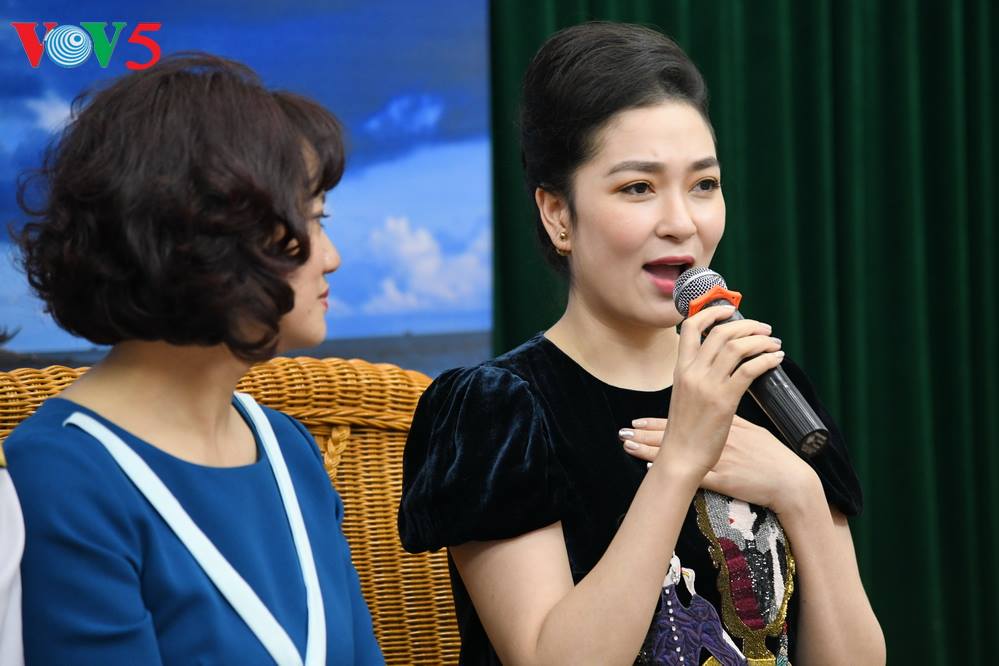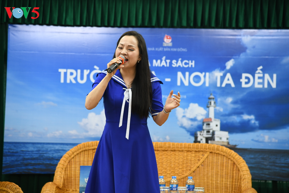 | Tại buổi ra mắt sách, nghệ sĩ ưu tú Khánh Hòa thể hiện những ca khúc về Trường Sa. |