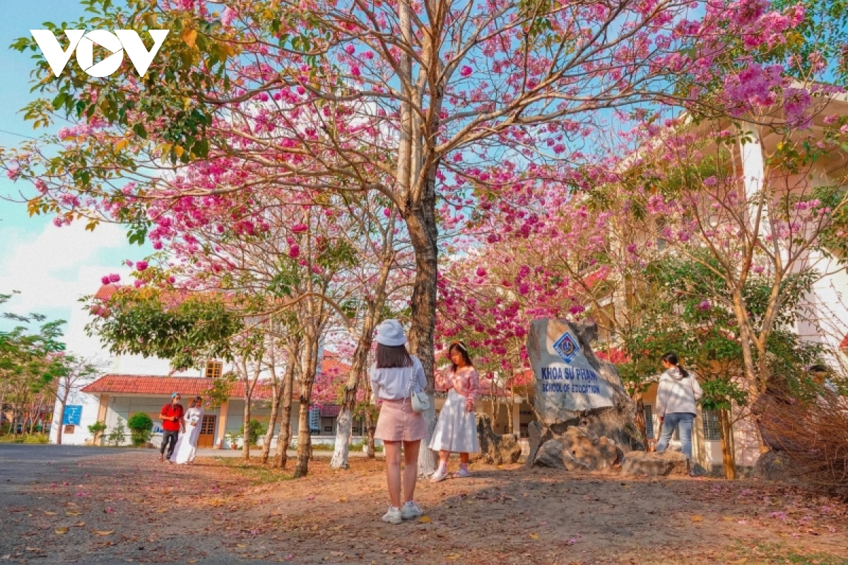 Không chỉ tại tỉnh Sóc Trăng, những ngày qua, khuôn viên Trường Đại học Cần Thơ cũng thu hút khá đông giới trẻ đến “check-in” tại không gian hoa kèn hồng đang nở rộ, đẹp lung linh.