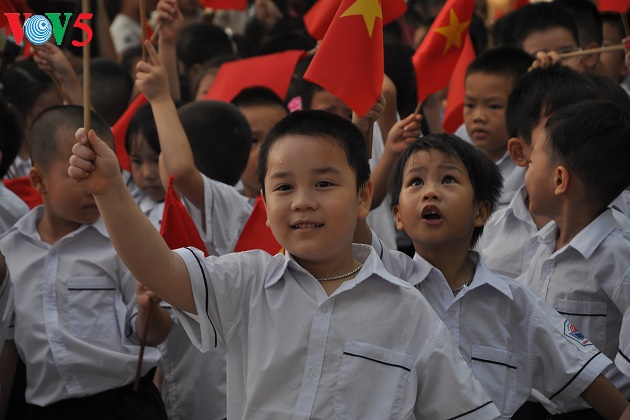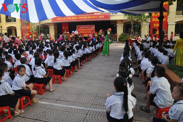 (VOV5) - Sáng 5/9, gần 22 triệu học sinh, sinh viên cả nước hân hoan chào đón năm học mới 2017-2018. Khuôn mặt ai cũng hiện lên vẻ háo hức, vui mừng trong ngày khai giảng.