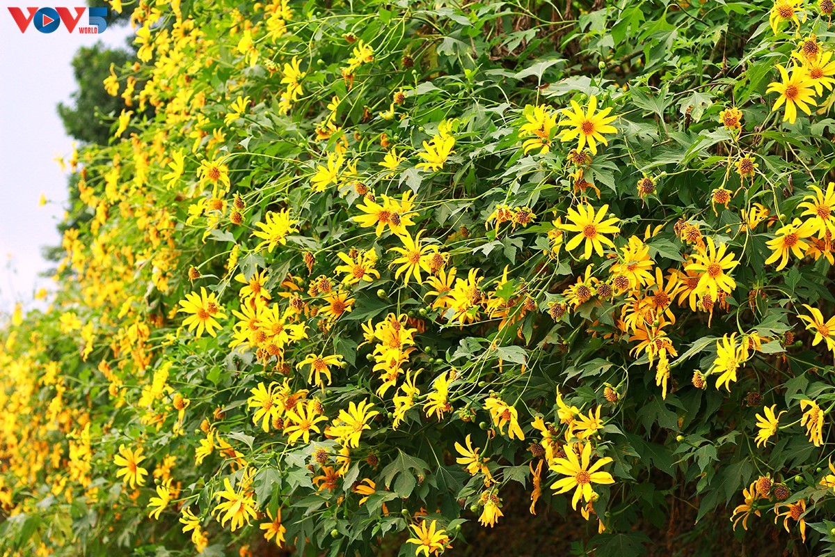 Hoa dã quỳ trải màu vàng rực rỡ trên những sườn núi của VQG Ba Vì. |