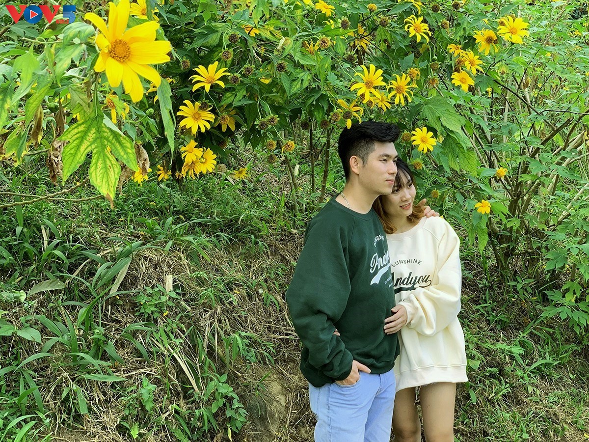 Rừng hoa dã quỳ cũng là nơi hẹn hò lãng mạn hay điểm check-in của những bạn trẻ để lưu giữ kỷ niệm thời thanh xuân. |