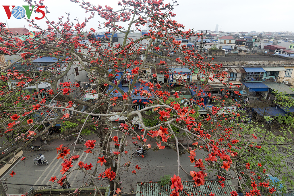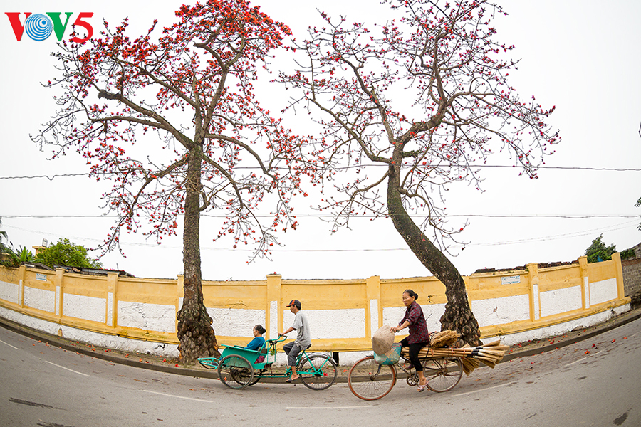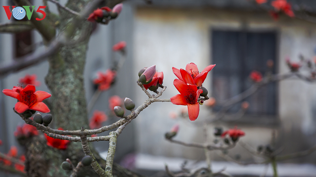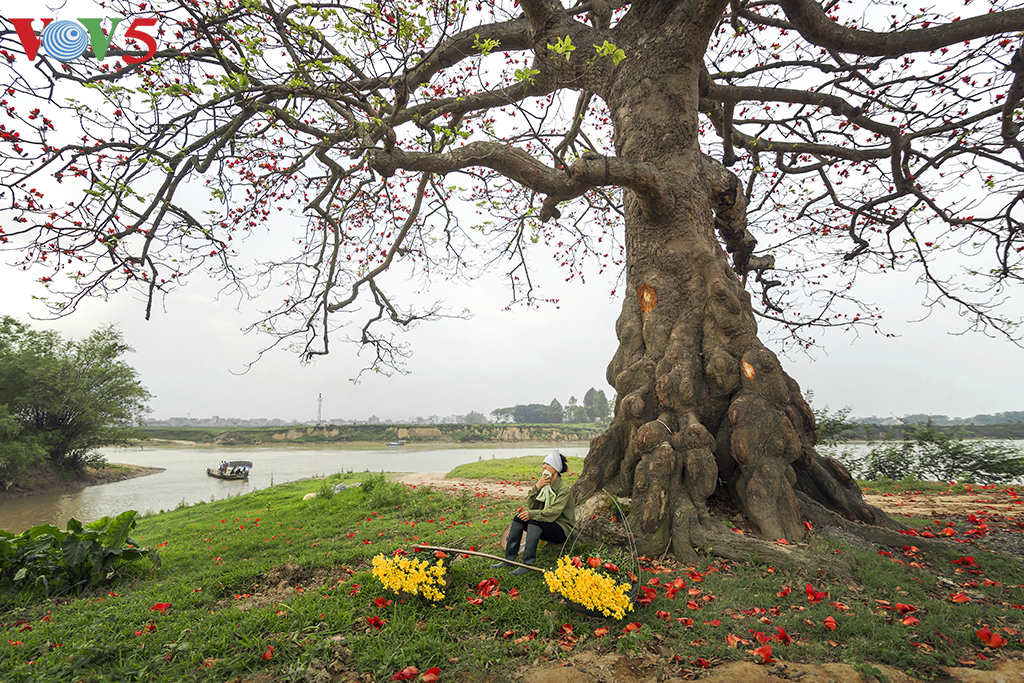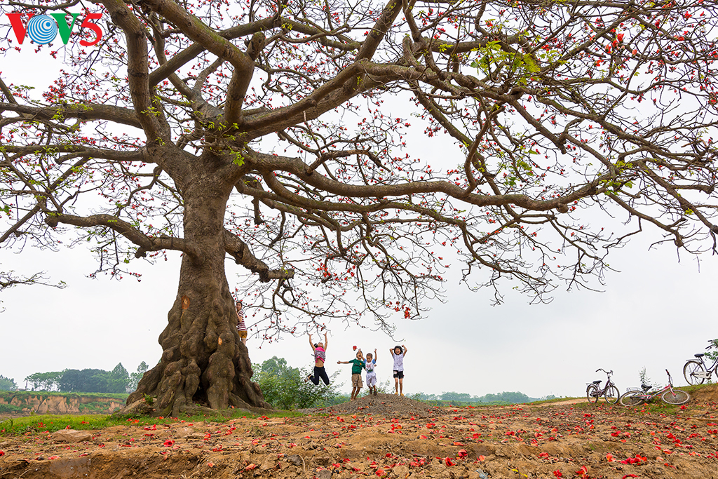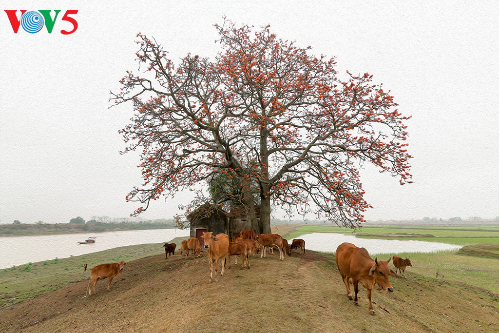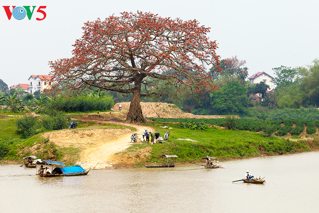 Hoa gạo gắn liền với mùa xuân làng quê xứ Bắc. Vào tháng 2 cây thường rụng hết là và trở nên trơ trụi đầu làng để rồi tháng 3 về với tiết trời nồm ẩm mưa xuân, những cánh hoa đỏ thắm bung nở nhuộm đỏ một góc trời.