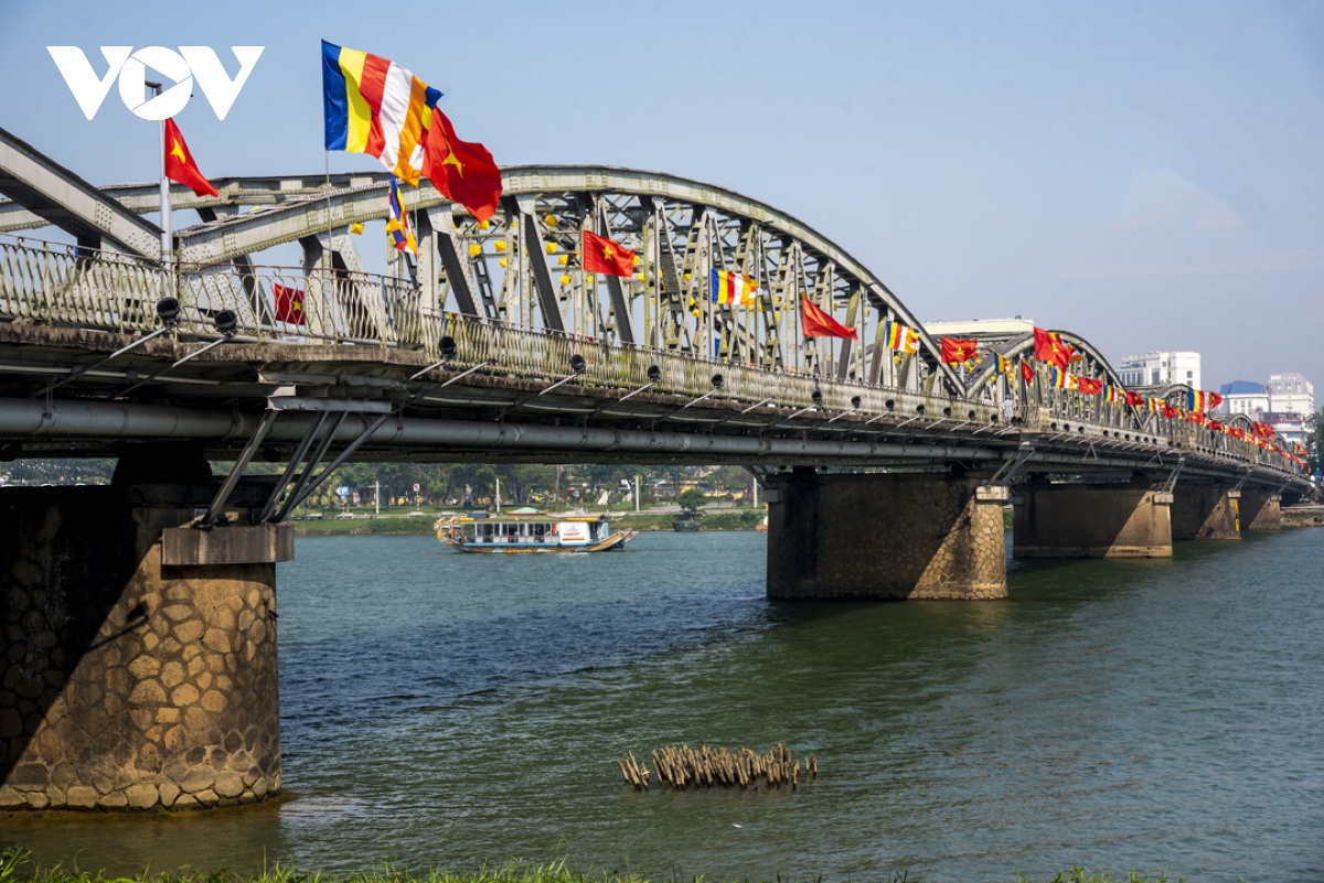 Hình ảnh cờ Tổ quốc và cờ Phật giáo khiến thành phố Huế những ngày qua thêm phần rực rỡ. |