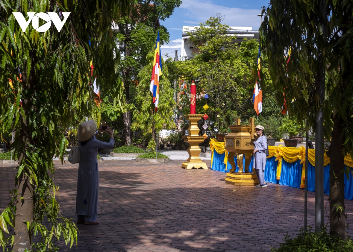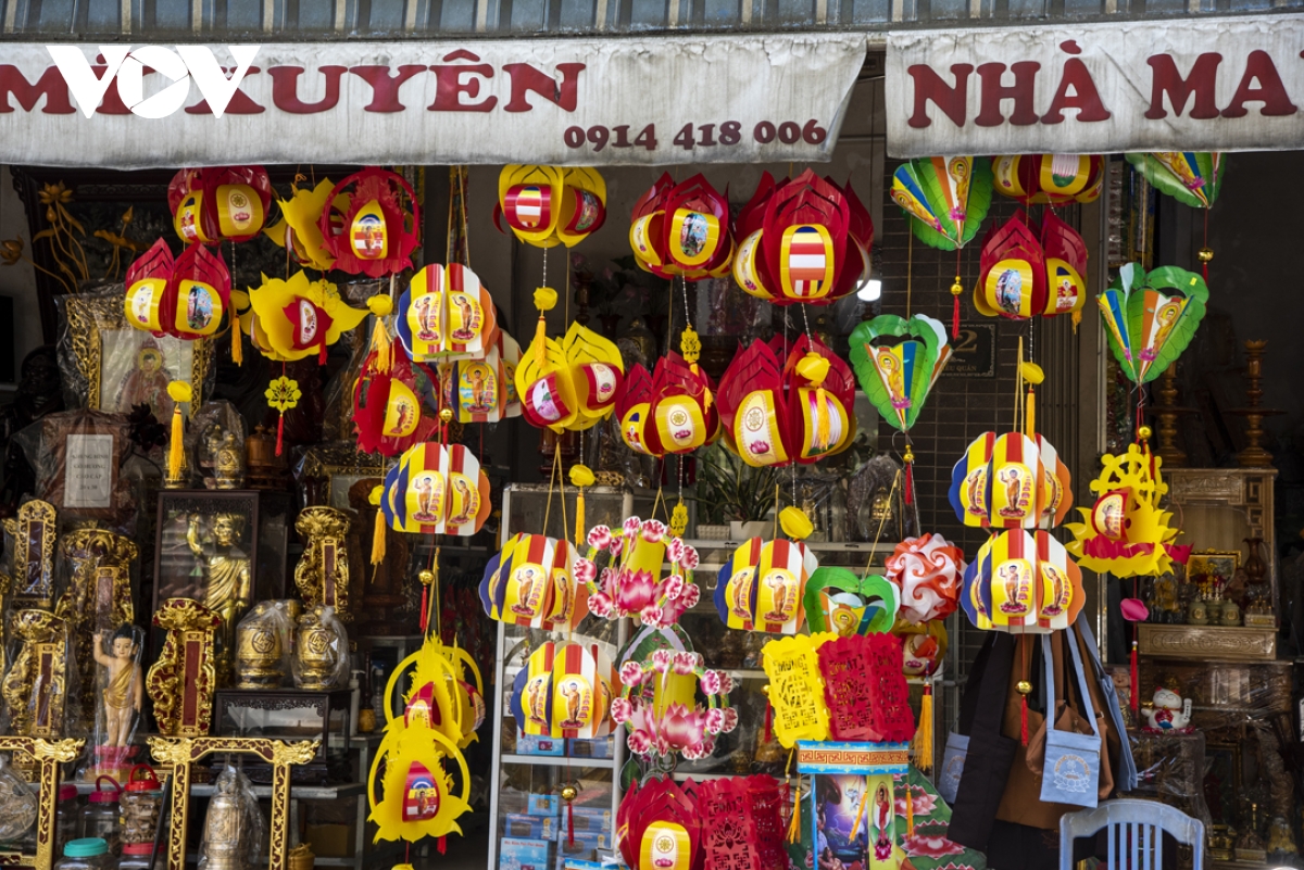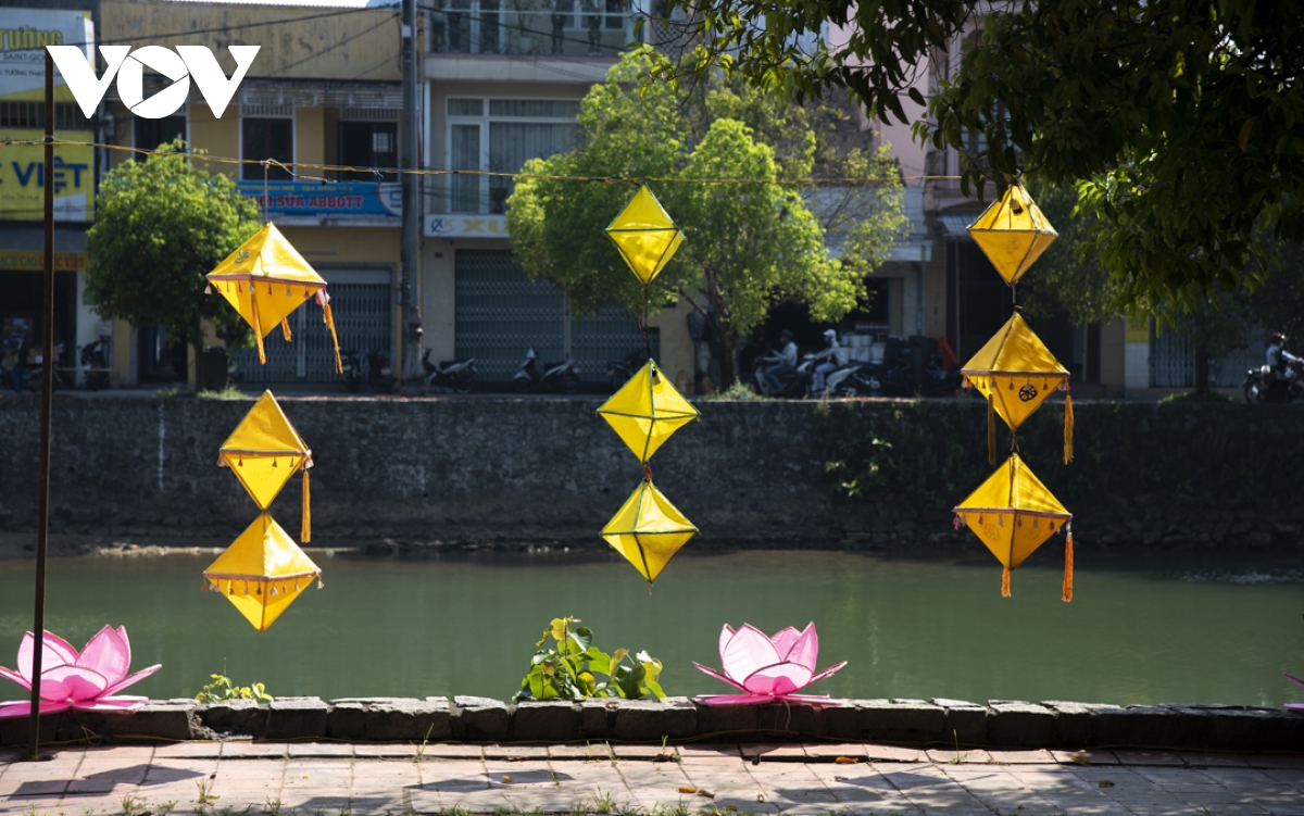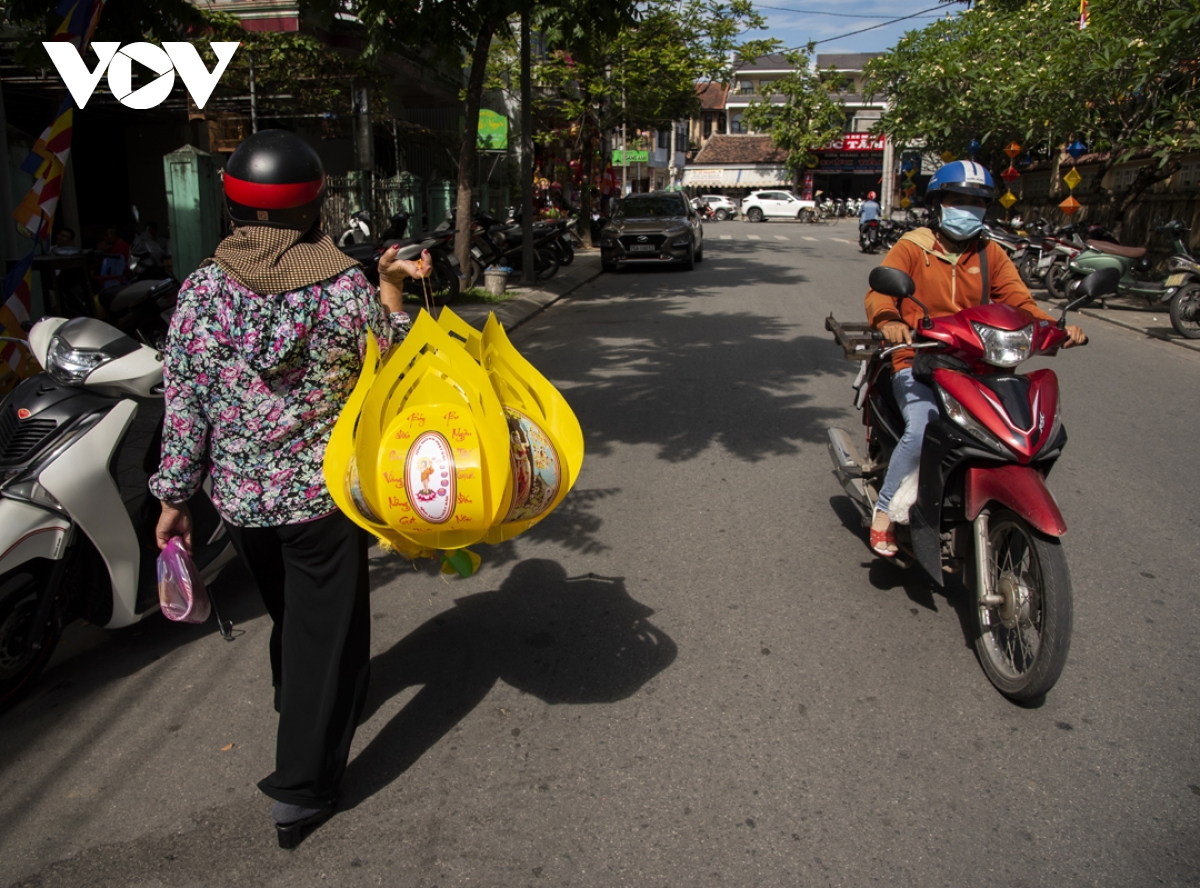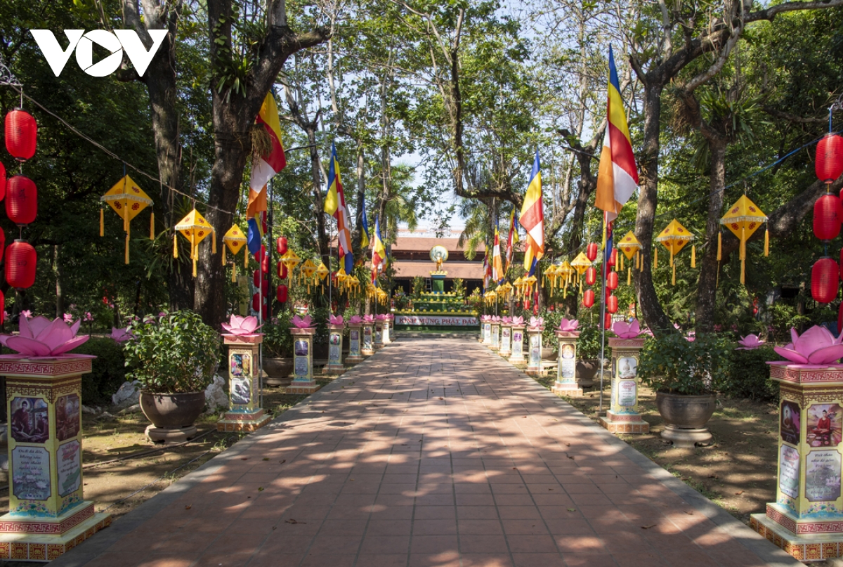 Trong thời gian diễn ra lễ hội, trên các tuyến đường từ thành thị đến nông thôn đều được trang hoàng cờ đèn, tạo không khí hân hoan của người dân xứ Huế đón chào mùa Phật đản. |