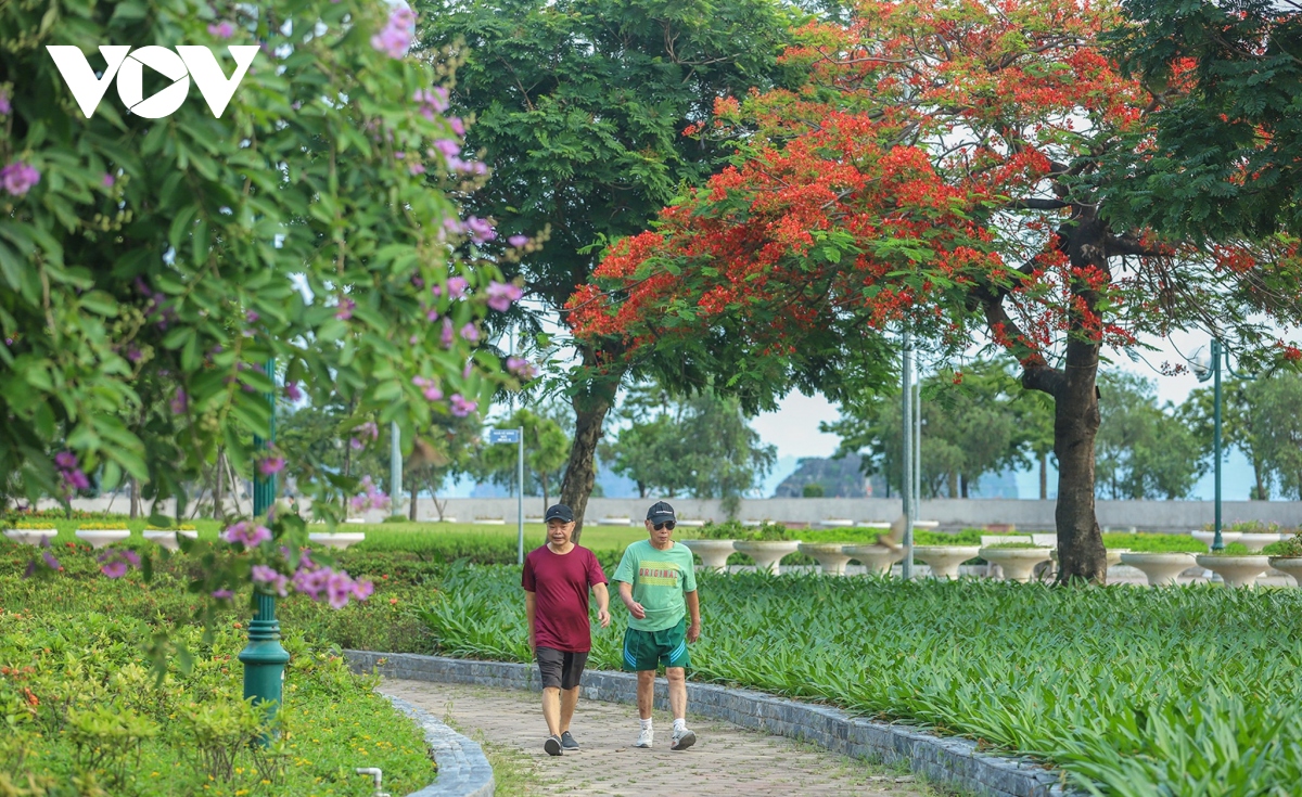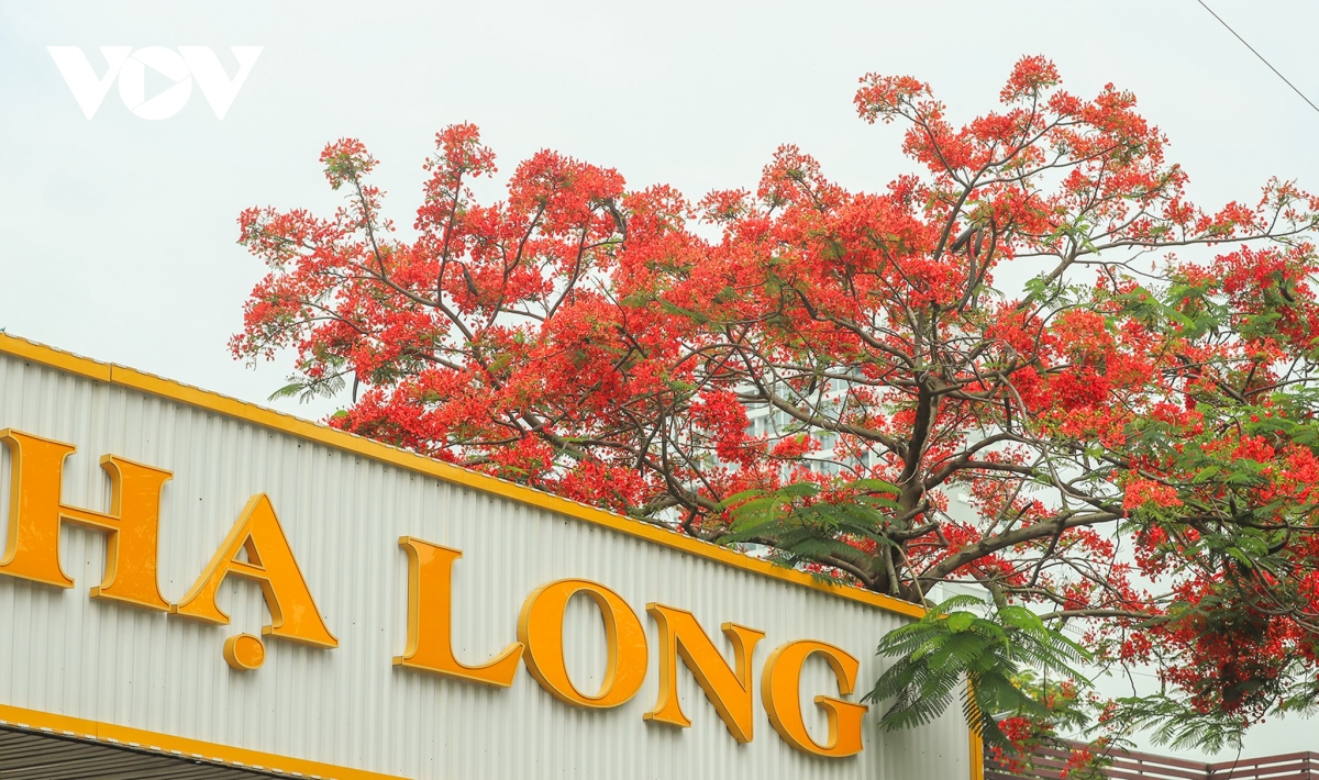 Không kém bằng lăng, sắc đỏ của phượng vĩ cũng khiến phố biển Hạ Long thêm phần ấn tượng trong mắt người dân, du khách.