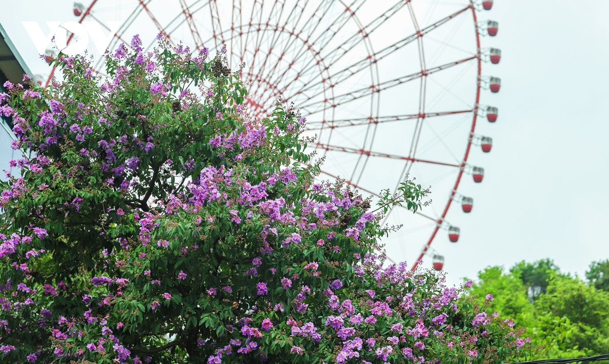 Dưới ánh nắng hè chói chang, bằng lăng như được ướp thêm sắc tím càng trở nên rực rỡ.