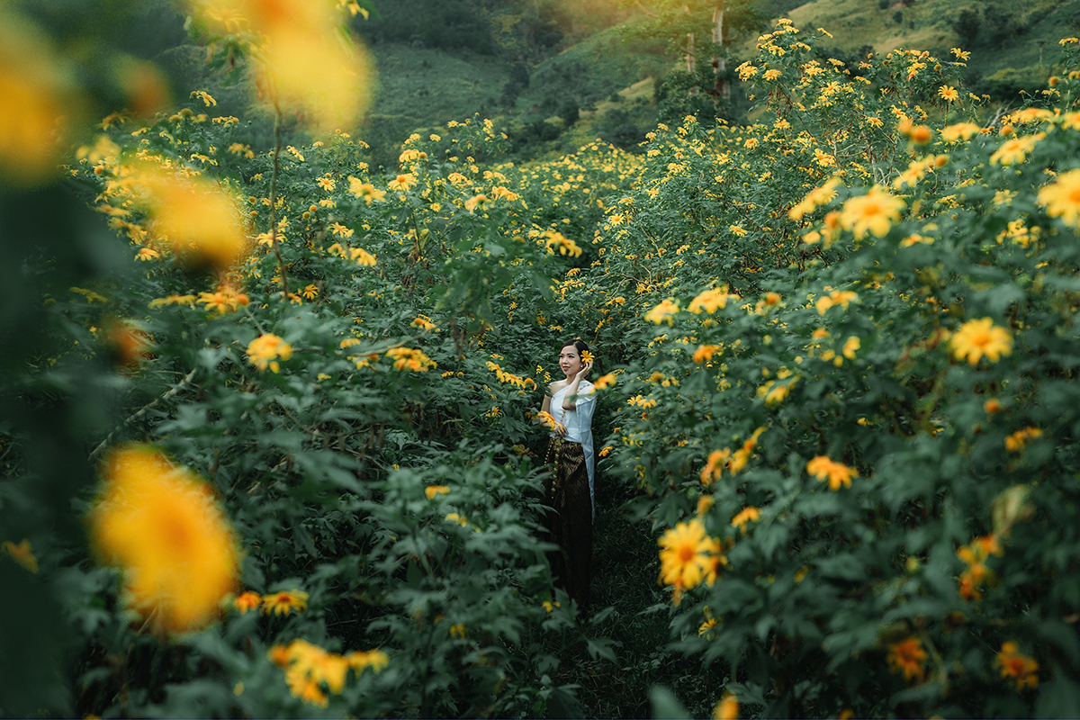 Những con đường ngập tràn sắc vàng của hoa dã quỳ khiến ai ai cũng phải xao xuyến khi ghé thăm. Ảnh: mia.vn |