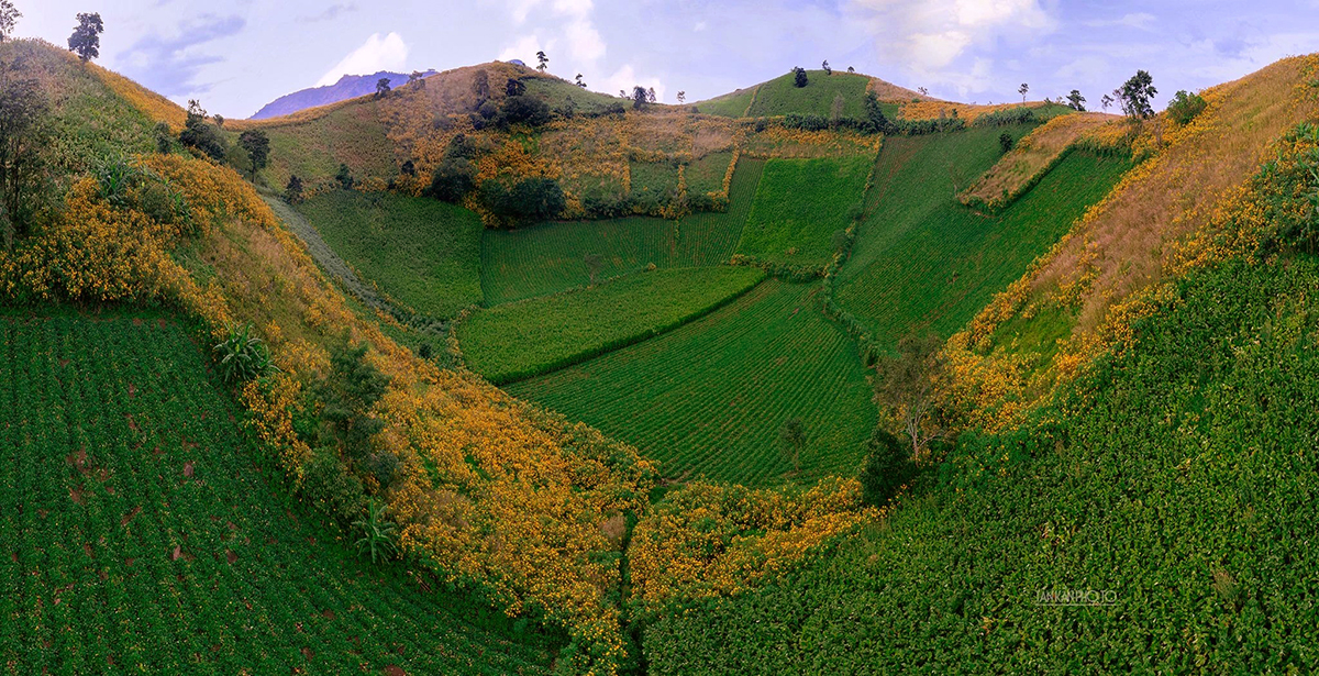 Vào mùa này, sắc vàng của hoa dã quỳ xen kẽ với màu xanh của nương rẫy, tạo nên vẻ đẹp đầy cuốn hút cho vùng cao nguyên. Ảnh: Tấn Kần/thanhnien.vn |