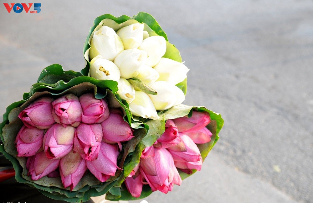 Cái nắng gay gắt của trời hè tháng 6 lại được làm dịu lại bởi sắc trắng, hồng của hoa sen. Hương thơm ngào ngạt, thanh toa của sen tỏa đi khắp phố phường Hà Nội.