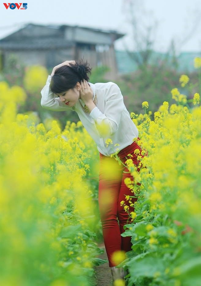 Những ngày đông xám xịt của Hà Nội được nhuộm màu vàng bởi những vạt cải ven sông. Hoa cải mang vẻ đẹp đậm hồn quê giữa chốn đô thị phồn hoa, tuy chẳng phải cao sang, đài các nhưng khi hòa mình vào cánh đồng hoa, ai nấy đều cảm thấy những bức ảnh mang nét đặc sắc riêng, vừa rực rỡ, vừa tươi mới.