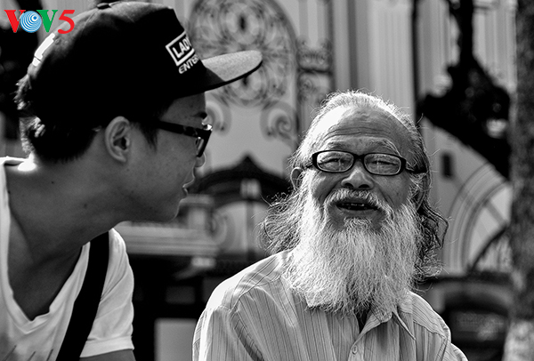 Ông và cháu. Ảnh: Lữ Thế Phương