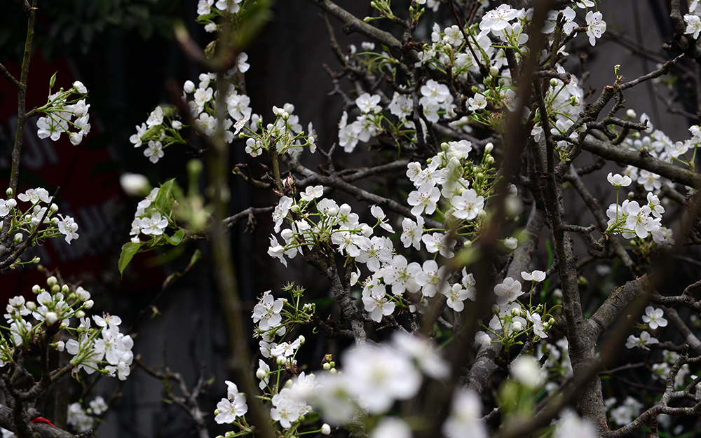 Không như hoa Đào hẹn nhau đầu Xuân cùng lúc khoe sắc diễm lệ, trong tiết Xuân mùa giao mưa giao nắng cùng vài cơn gió mang hơi ẩm lạnh, thấp thoáng trong vườn nhà các ngôi biệt thự xưa, những cây hoa Lê cổ thụ như cố nán lại mùa, rồi bất chợt nảy bật ra từ những thân mốc thếch, xù xì những nụ hoa tròn nhỏ, thong thả hé từng cánh trắng mỏng, lần lượt từng bông cho đến khi hoa chen hoa, chụm vào nhau thành từng chùm trắng muốt điểm phớt hồng nhụy hoa, vươn mình khỏe khoắn. Hoa lê trắng dịu dàng, nhưng lại tràn đầy sức sống đối nghịch với những cành cây trơ lá trông xa như những cành củi khô, sự khác biệt đó đã tạo nên nét duyên ngầm có phần bí ẩn.