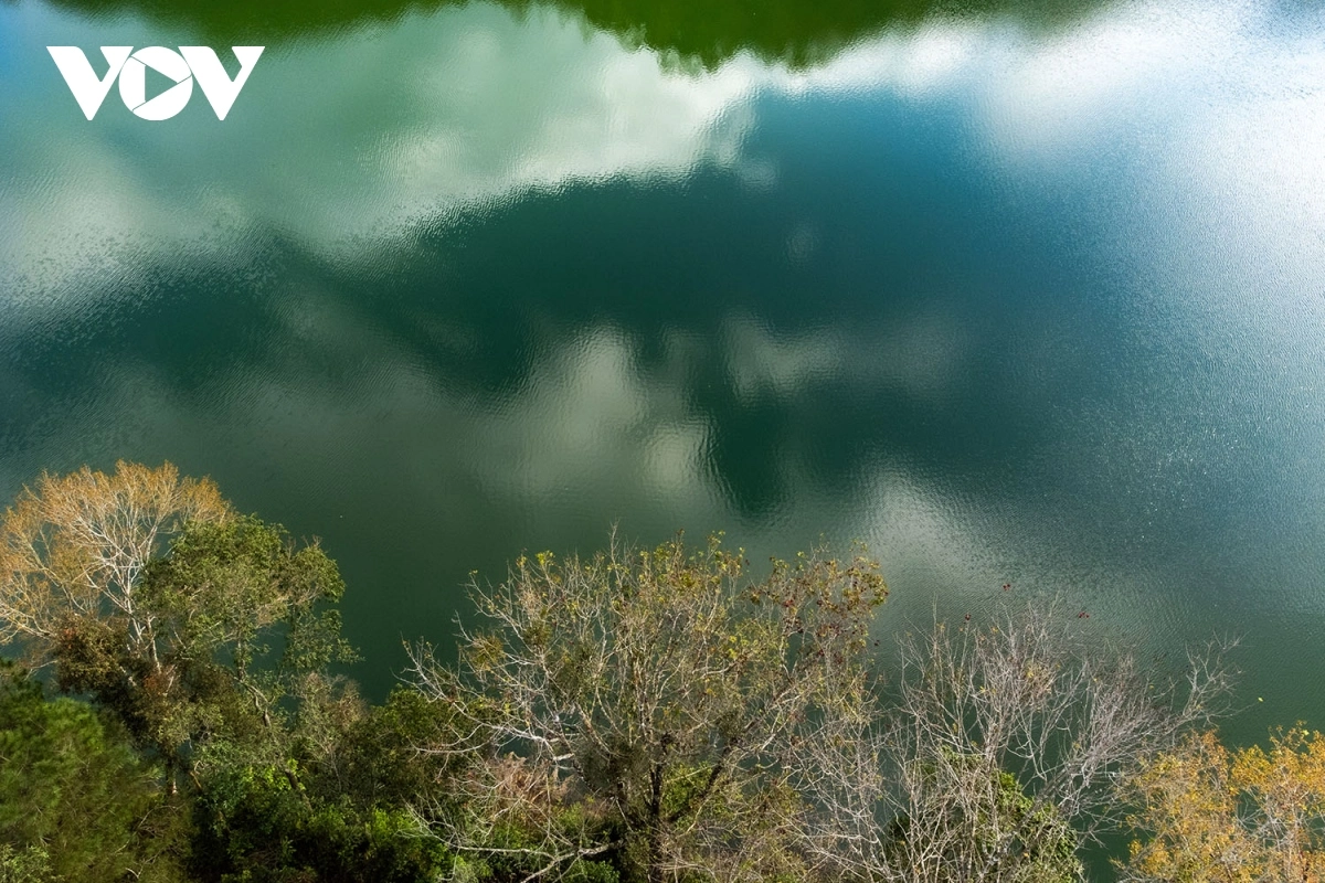 Quanh hồ có thảm thực vật phong phú, các tán rừng bao quanh ôm lấy mặt hồ nước màu xanh ngọc như bức tranh tĩnh lặng, ban sơ.