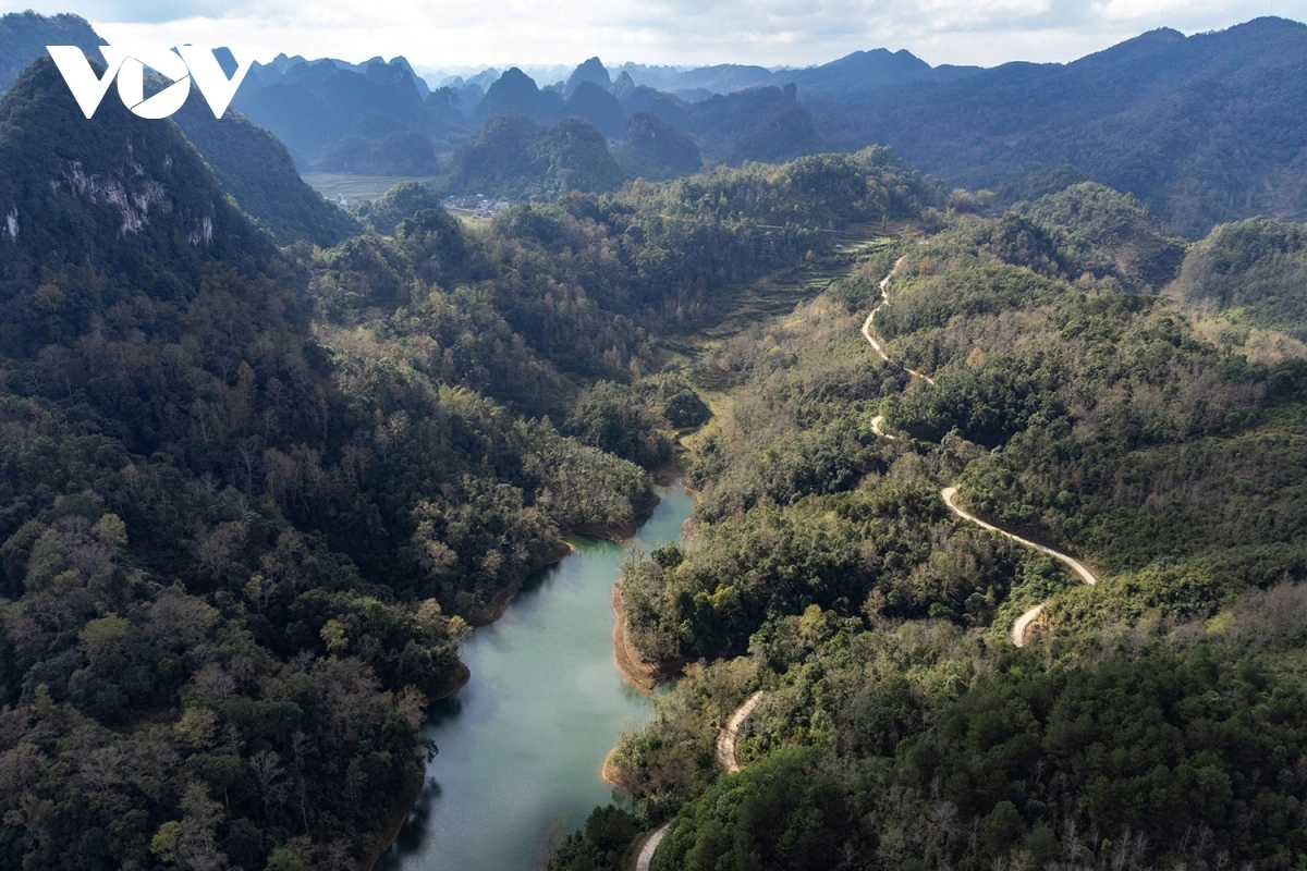 Được ví như "miếng ngọc xanh" giữa ngút ngàn núi non trùng điệp, hồ Bản Viết (xóm Bản Viết, xã Phong Châu, huyện Trùng Khánh, tỉnh Cao Bằng) mỗi mùa lại góp cho bức tranh thiên nhiên những nét đẹp sinh động, đầy màu sắc.
