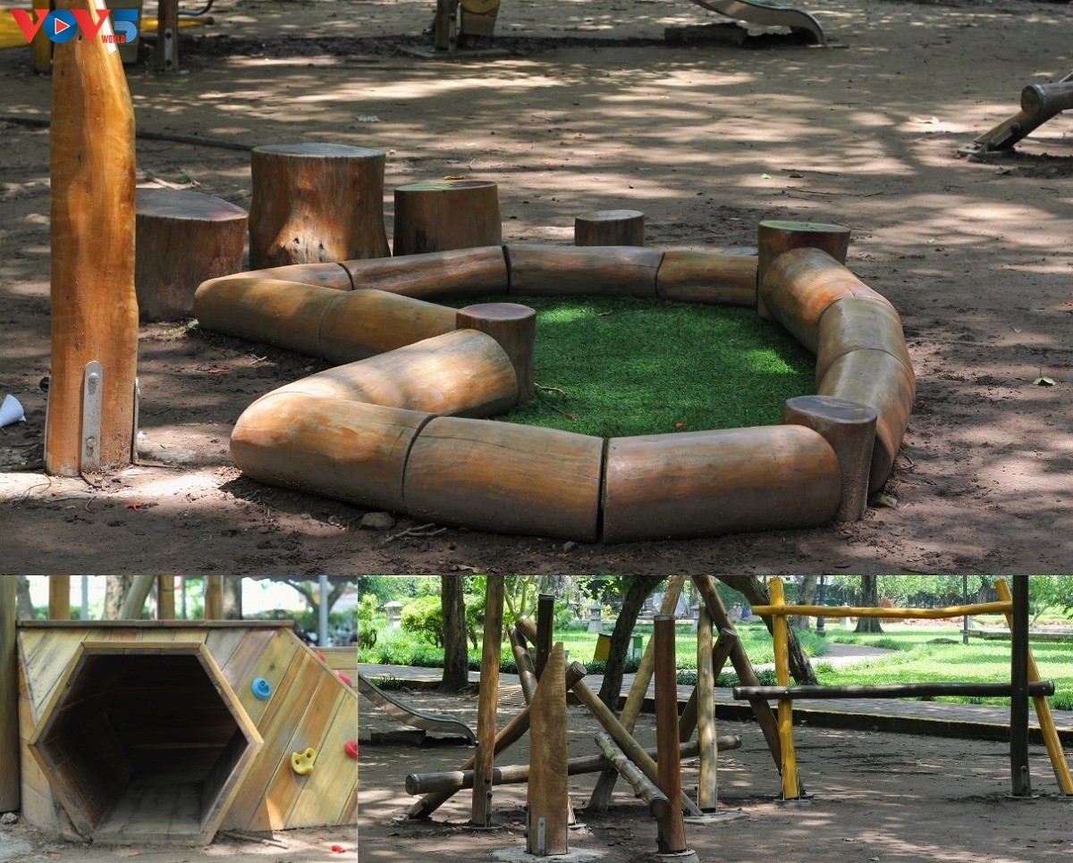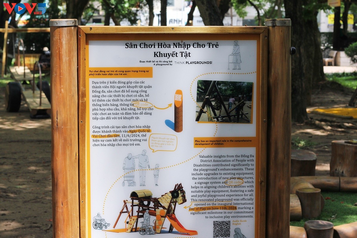 Sân chơi có nhiều cấu trúc vui chơi đa dạng, được thiết kế phù hợp với trẻ em có nhu cầu thể chất, tâm lý, giác quan khác nhau, đặc biệt chú trọng những nhu cầu của trẻ khuyết tật và người chăm sóc các em trong hoạt động chơi. |