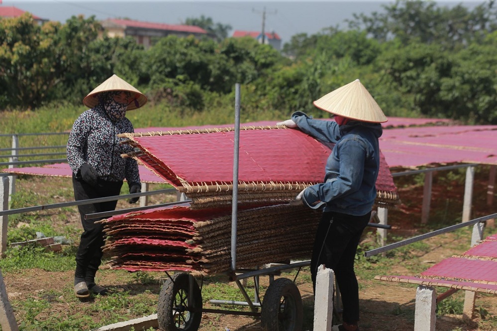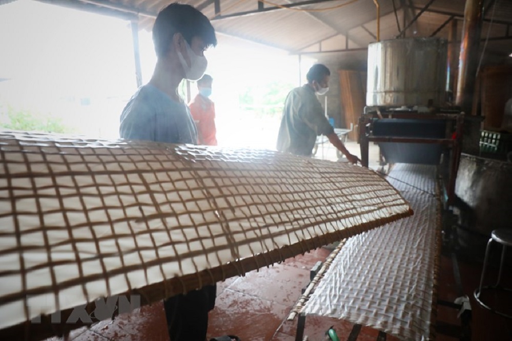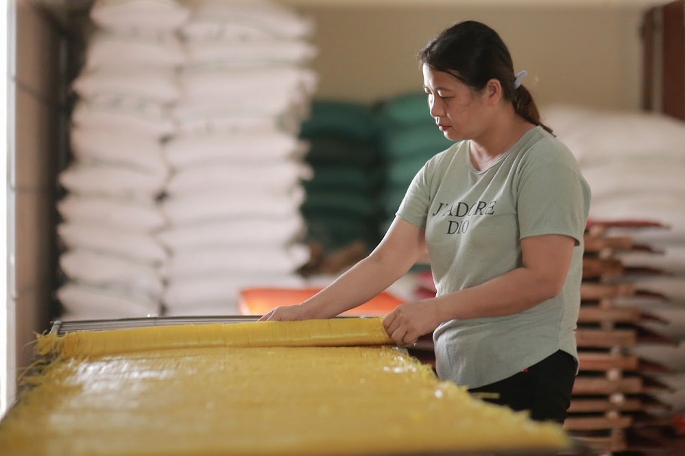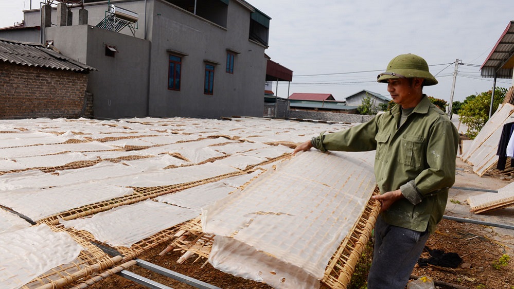 | Bột được tráng thành bánh từ sáng sớm để kịp phơi cho được nắng. Ảnh: VOV |