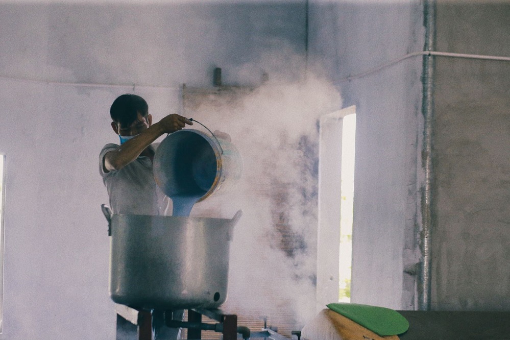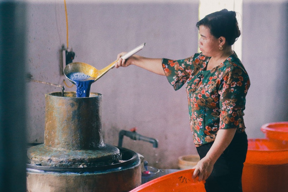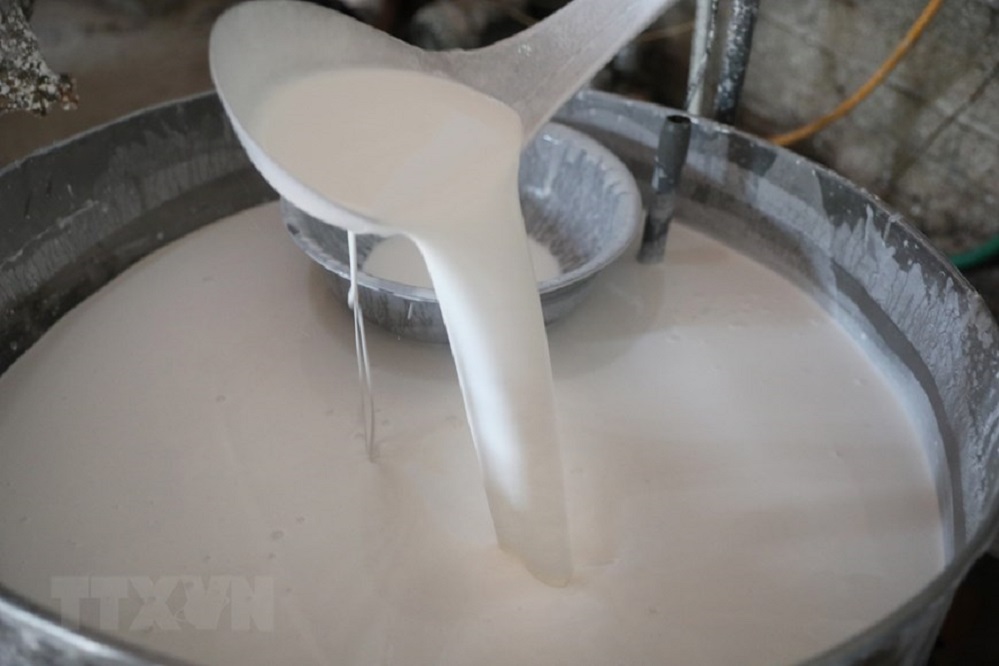 | Gạo được xay thành bột bằng cối đá xanh để có được thứ bột dẻo, sánh. Ảnh: VOV |